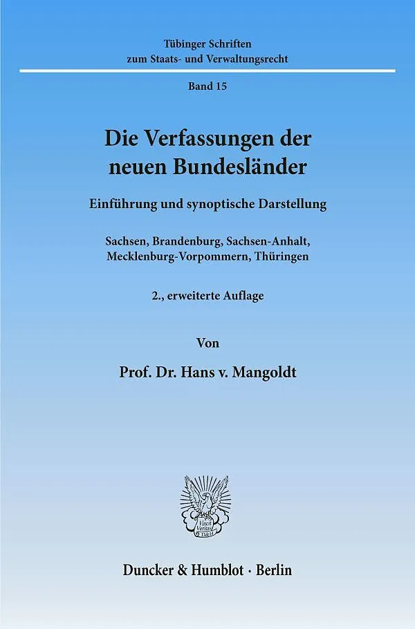 Verfassunggebung bedeutet für die neuen Bundesländer nach vielen Jahren Diktatur ein Stück Selbstfindung. Mit ihrer Dokumentation wird ein wesentlicher Beitrag der östlichen Bundesländer zur staatlichen Vereinigung unter dem Grundgesetz geleistet. Mit der zwei...