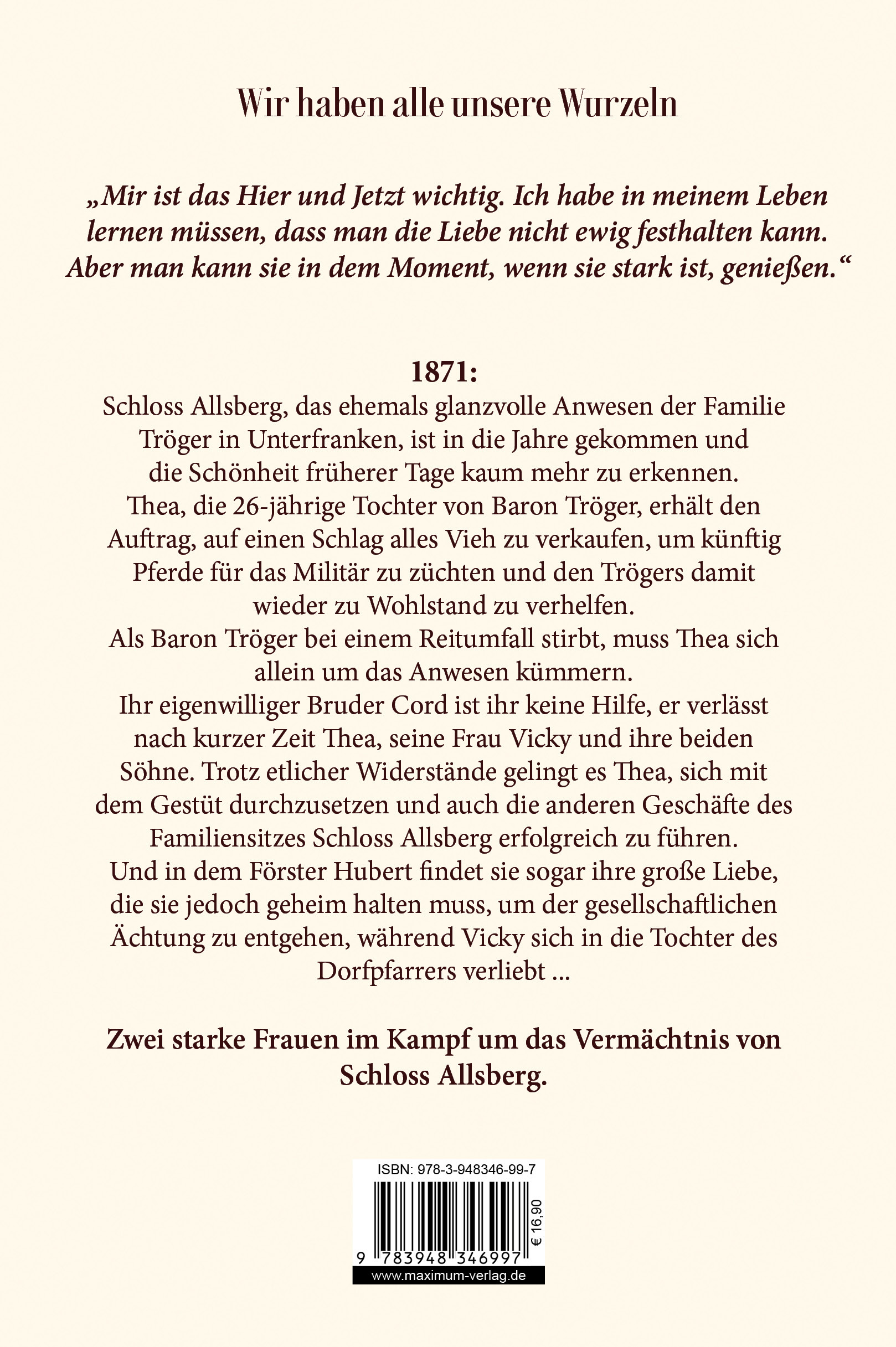 Wir haben alle unsere Wurzeln Mir ist das Hier und Jetzt wichtig. Ich habe in meinem Leben lernen müssen, dass man die Liebe nicht ewig festhalten kann. Aber man kann sie in dem Moment, in dem sie stark ist, genießen. 1871: Schloss Allsberg, das ehemals glanz...