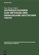 Untersuchungen zur Methode der Herausgabe deutscher Texte