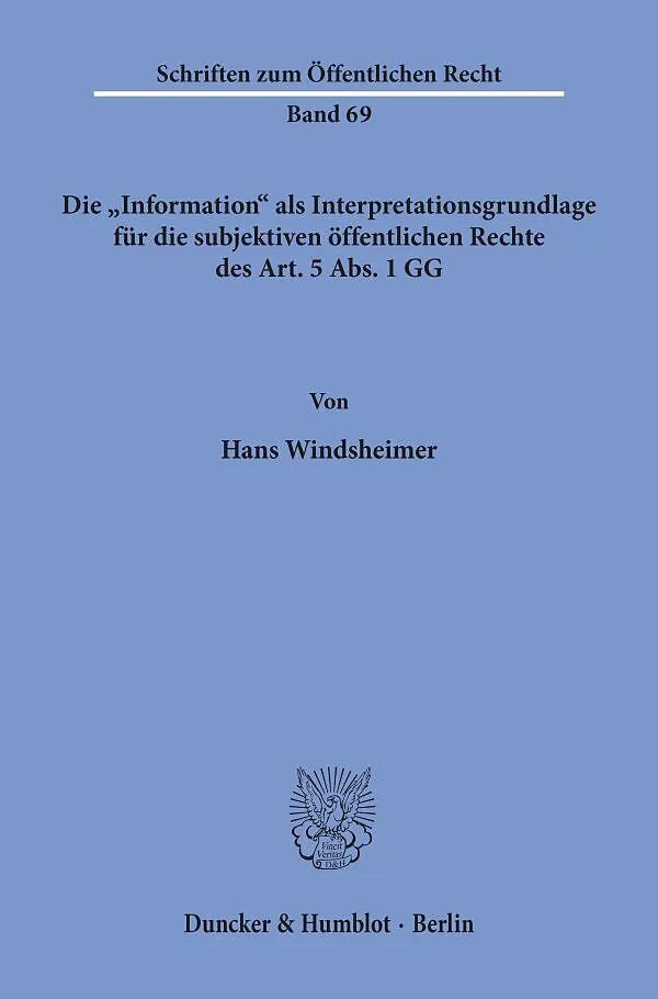 Die "Information" als Interpretationsgrundlage für die subjektiven öffentlichen Rechte des Art. 5 Abs. 1 GG.