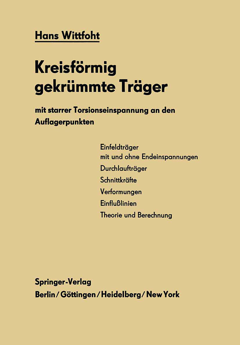 In groBer Zahl ist bereits heute der kreisformig gekriimmte Trager in den ver schiedensten Erscheinungsformen in der modernen Bautechnik anzutre Pds. Pds. en und seine Verbreitung nimmt seit Mitte der 50er Jahre selbst im Briickenbau auch bei groBen Spannweite...