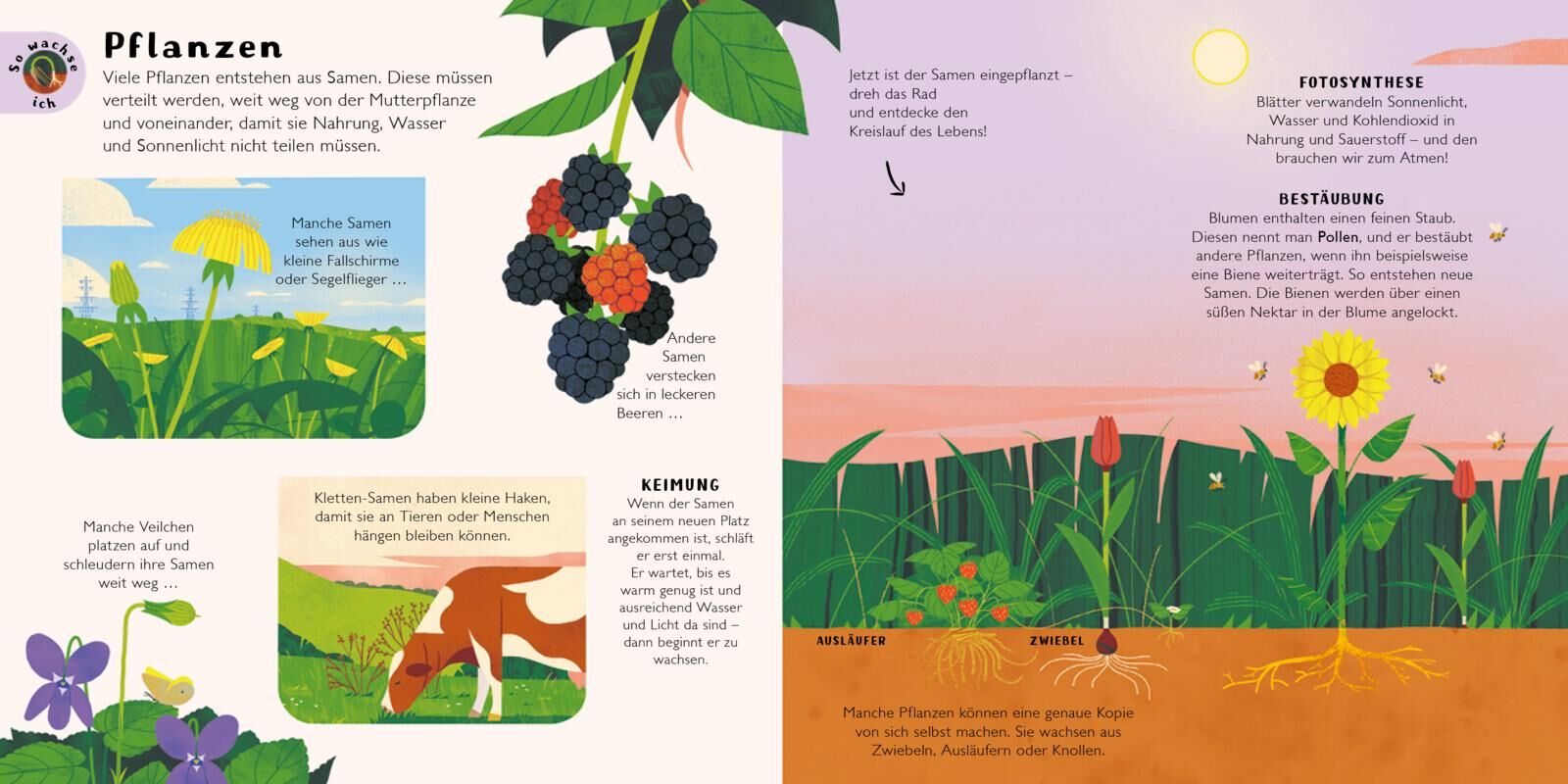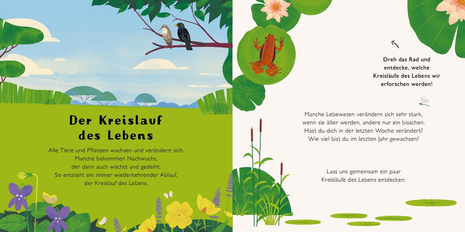 Mit diesem Natur-Pappebuch entdecken kleine und große Forscherinnen den faszinierenden Kreislauf des Lebens von Tieren und Pflanzen. Auf jeder Doppelseite lädt ein drehbares Rad zum Mitmachen ein und zeigt anschaulich, wie alles miteinander verbunden ist. Vie...