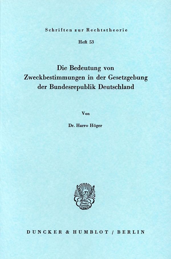 Die Bedeutung von Zweckbestimmungen in der Gesetzgebung der Bundesrepublik Deutschland.
