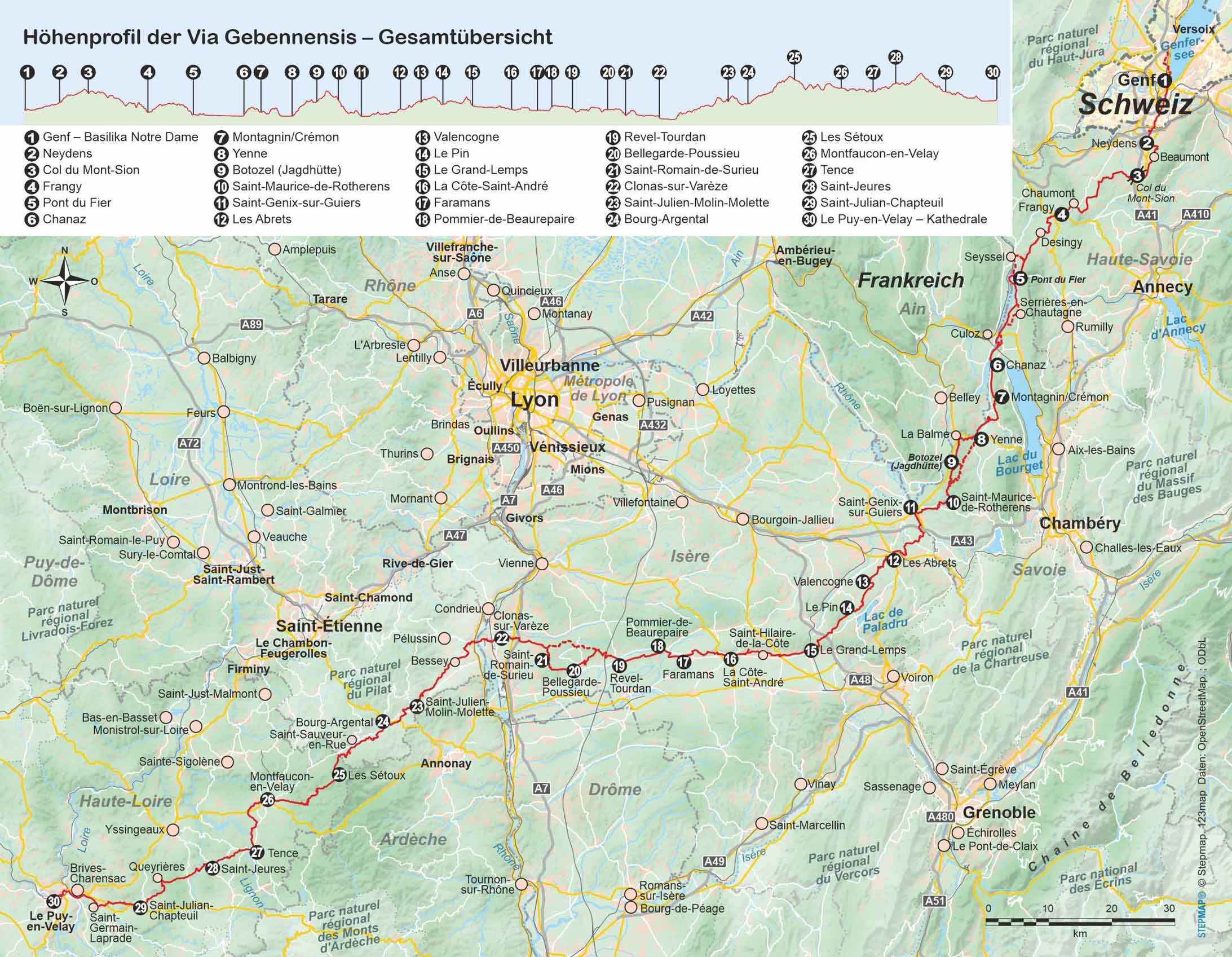 Der in diesem Band beschriebene Jakobsweg, die Via Gebennensis, verläuft über 354 km zwischen dem schweizerischen Genf und dem französischen Pilgerzentrum Le Puy-en-Velay im Département Haute-Loire. Er gehört nach Meinung vieler Pilger zu den schönsten Jakobsw...