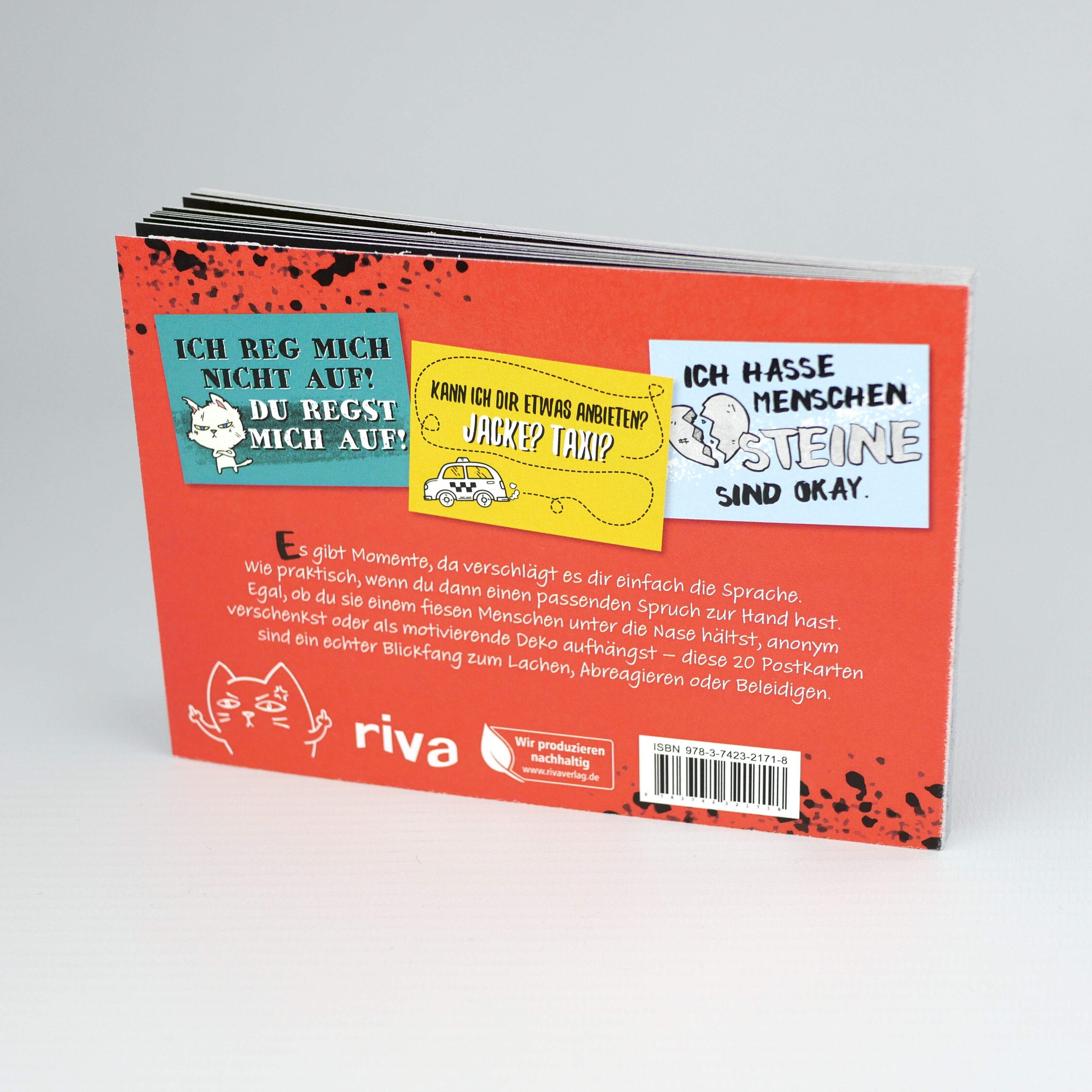 »Der Mittelfinger wurde ursprünglich nur für dich erfunden.« Jeder kennt Situationen, in denen nichts besser passt als ein fieser aber konstruktiver Spruch. Nach dem großen Erfolg von »Ich hasse Menschen. Sehr« gibt es nun 20 geniale Postkarten mit mehr oder ...
