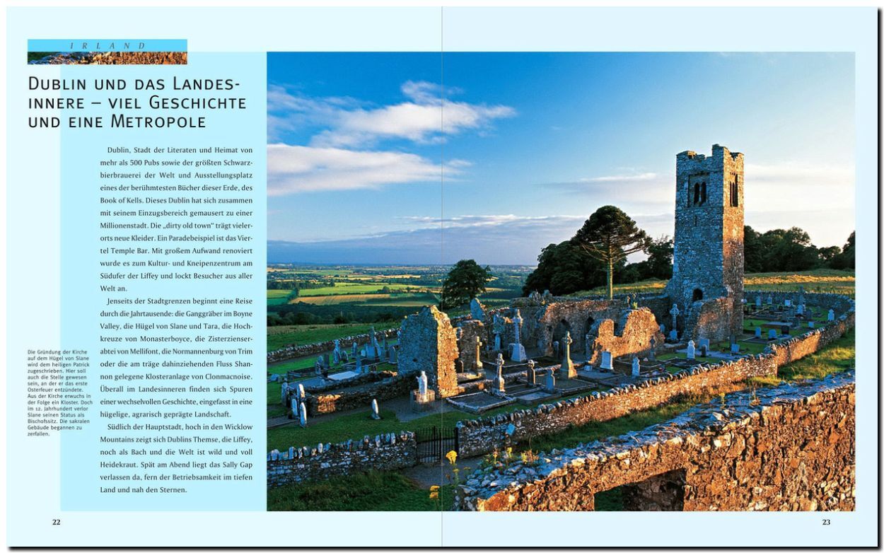 Irland die grüne Insel am Rande Europas fasziniert mit einzigartiger landschaftlicher Vielfalt: sanfte Hügelwelten mit eingestreuten Cottages, Klippen, die dramatisch aus großen Höhen zum Meer hin abbrechen, einsame Sandstrände, an denen man sich wie Robinson ...
