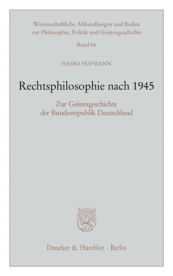 Es handelt sich um den ersten Versuch, die Wandlungen der Rechtsphilosophie nach dem Schock des Jahres 1945 im Kontext der politischen, sozialen, kulturellen und wissenschaftsgeschichtlichen Entwicklung zu begreifen. Der Bogen spannt sich von der sog. Naturrec...Es handelt sich um den ersten Versuch, die Wandlungen der Rechtsphilosophie nach dem Schock des Jahres 1945 im Kontext der politischen, sozialen, kulturellen und wissenschaftsgeschichtlichen Entwicklung zu begreifen. Der Bogen spannt sich von der sog. Naturrechtsrenaissance der Nachkriegsjahre über die Theoriediskussionen der »Reformzeit« und die Wiederkehr der Gerechtigkeitsdebatte bis zur Diskussion im Horizont der Globalisierung über die Universalisierbarkeit unserer Menschenrechtstradition.