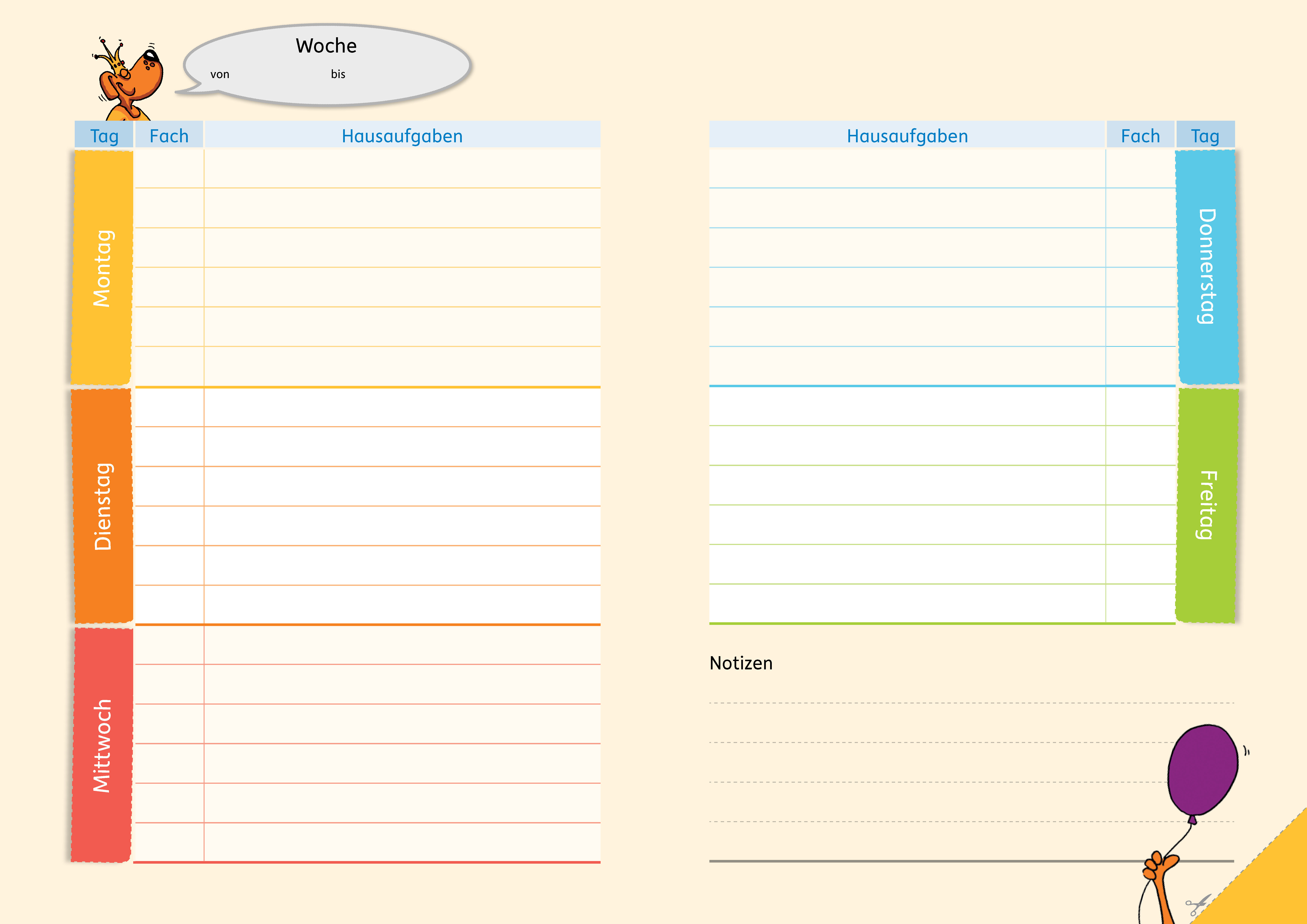 Das Hauschka-Hausaufgabenheft bietet den Schülern genug Platz für das Notieren der Hausaufgaben. Zusätzlich gibt es Raum für Notizen bzw. Anmerkungen von Lehrern oder Eltern. Kleine Spielchen, Rätsel und informative Texte und Bilder machen das Hausaufgabenheft...