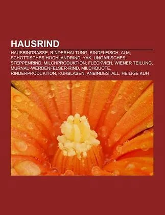 Quelle: Wikipedia. Seiten: 154. Kapitel: Hausrindrasse, Rinderhaltung, Rindfleisch, Alm, Schottisches Hochlandrind, Yak, Ungarisches Steppenrind, Milchproduktion, Fleckvieh, Wiener Teilung, Murnau-Werdenfelser-Rind, Milchquote, Rinderproduktion, Kuhblasen, Anb...