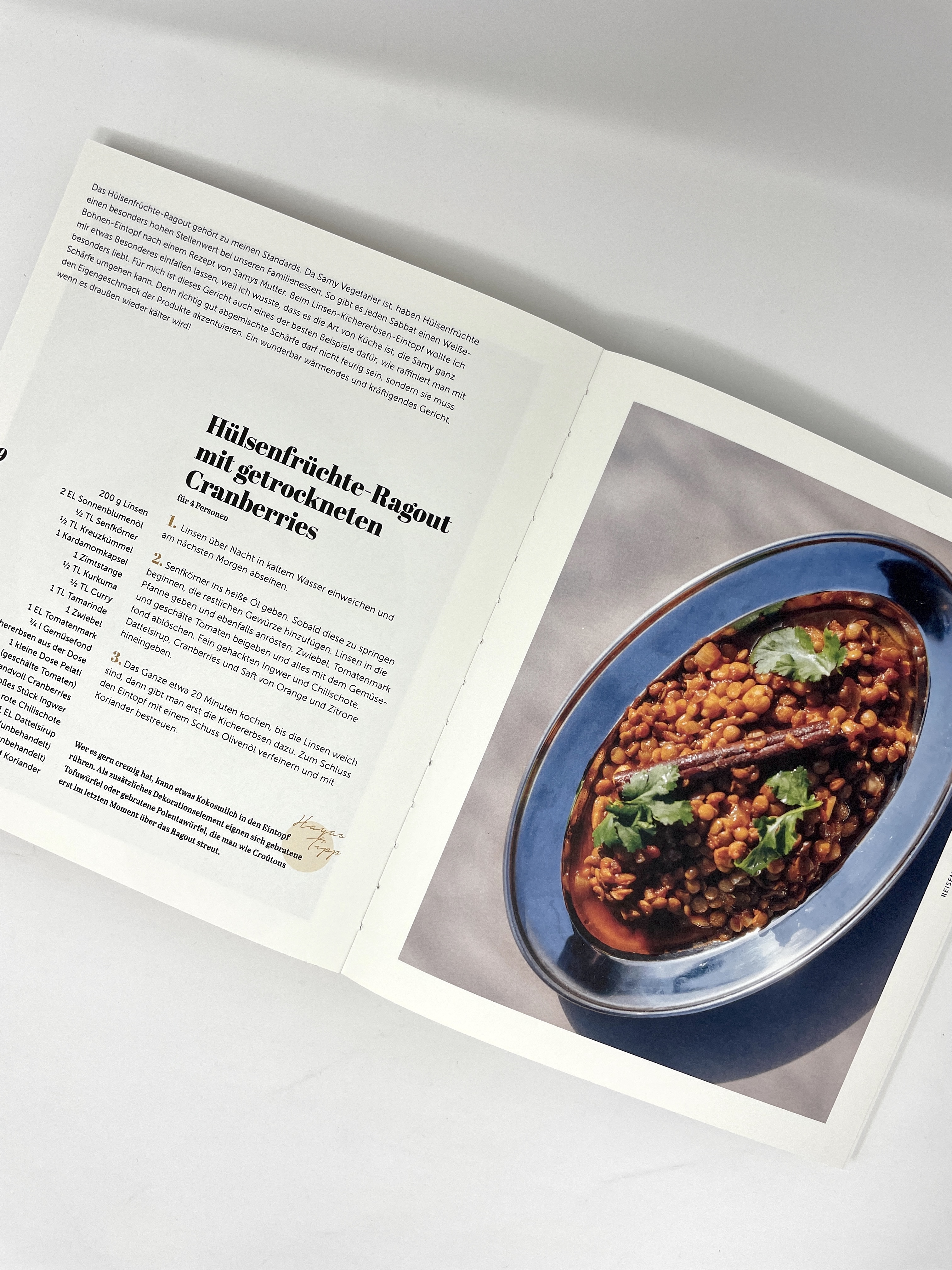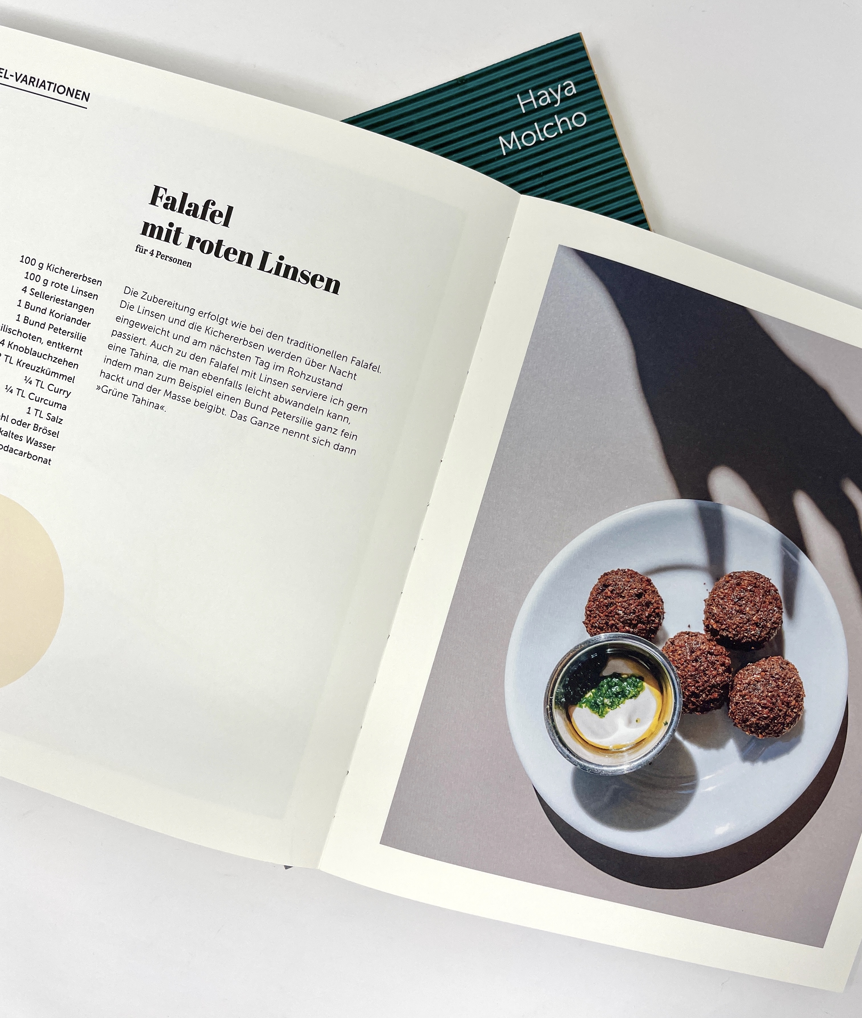 Buchrücken ist auf der rechten Seite: durch den israelisch-jüdischen Hintergrund werden die Rezepte von hinten nach vorne gelesen praktisch in der Handhabung: durch die besondere Art des Buchrückens (offene Fadenheftung) bleibt es bei dem gewünschten Rezept o...
