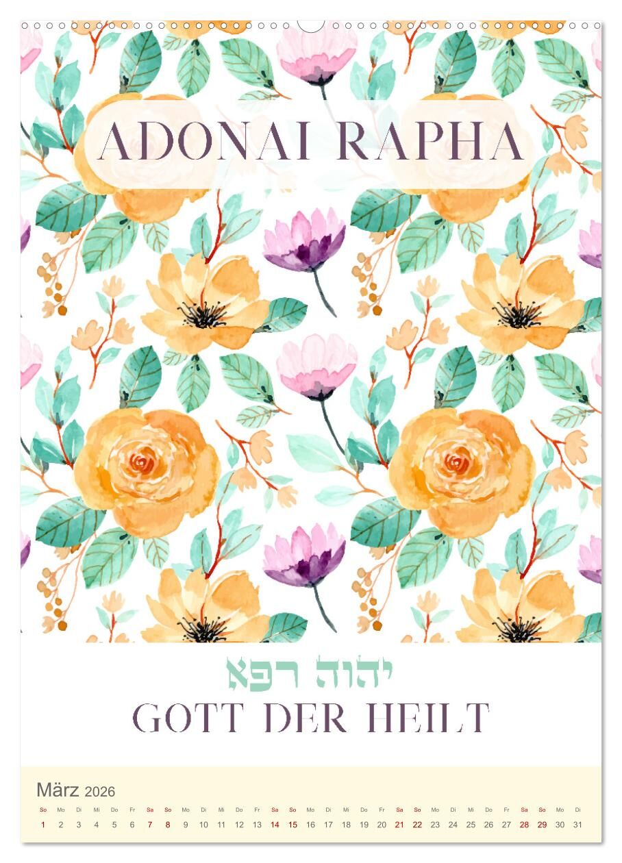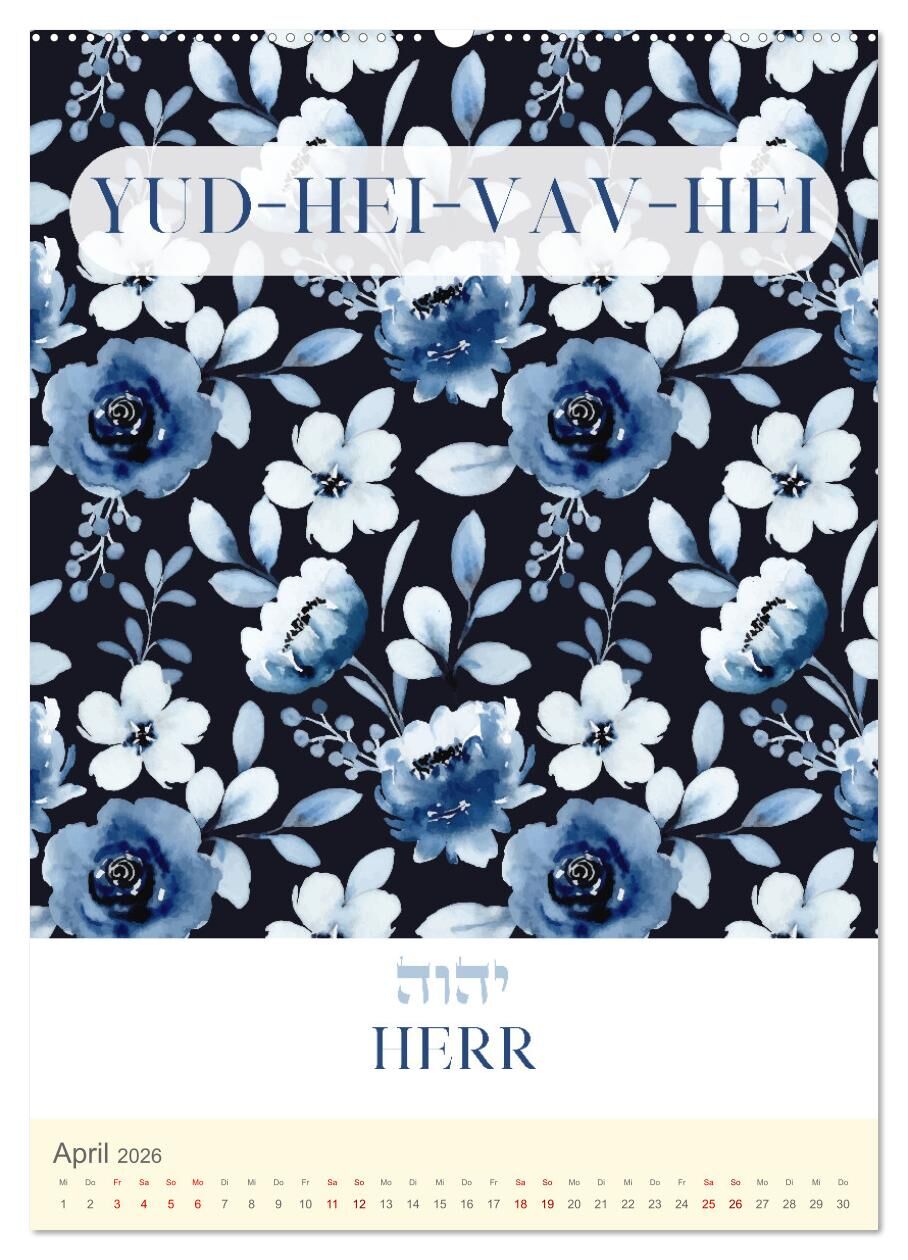 Hebräische Namen Gottes aus der Torah (hochwertiger Premium Wandkalender 2026 DIN A2 hoch), Kunstdruck in Hochglanz