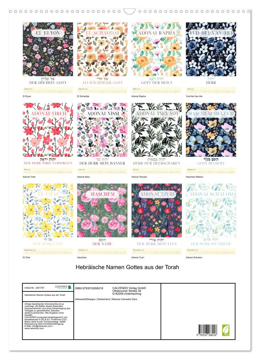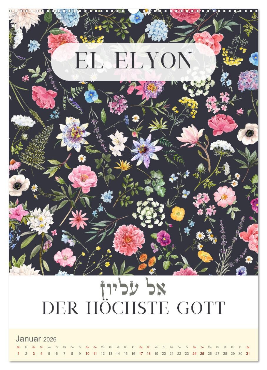 Hebräische Namen Gottes aus der Torah (Wandkalender 2026 DIN A2 hoch), CALVENDO Monatskalender