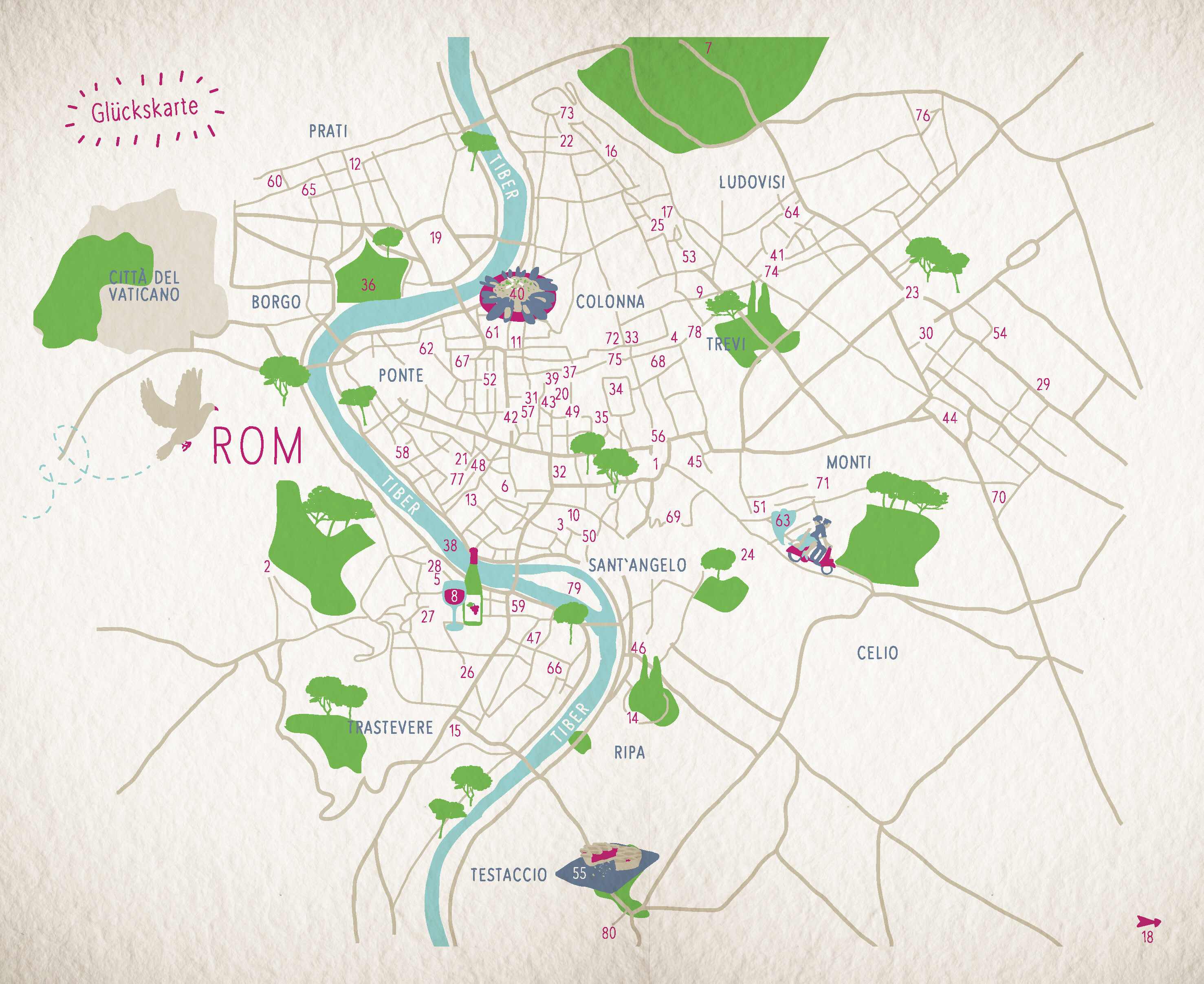 Das Glück hat in Rom besonders viele Facetten: das Streicheln eines pummeligen Elefanten aus Stein, ein Besuch bei den hübschen Wassernymphen, ein Zwiegespräch mit Engeln oder der leckere Espresso mit Einheimischen im historischen Café. Heide Geiss verrät 80 i...