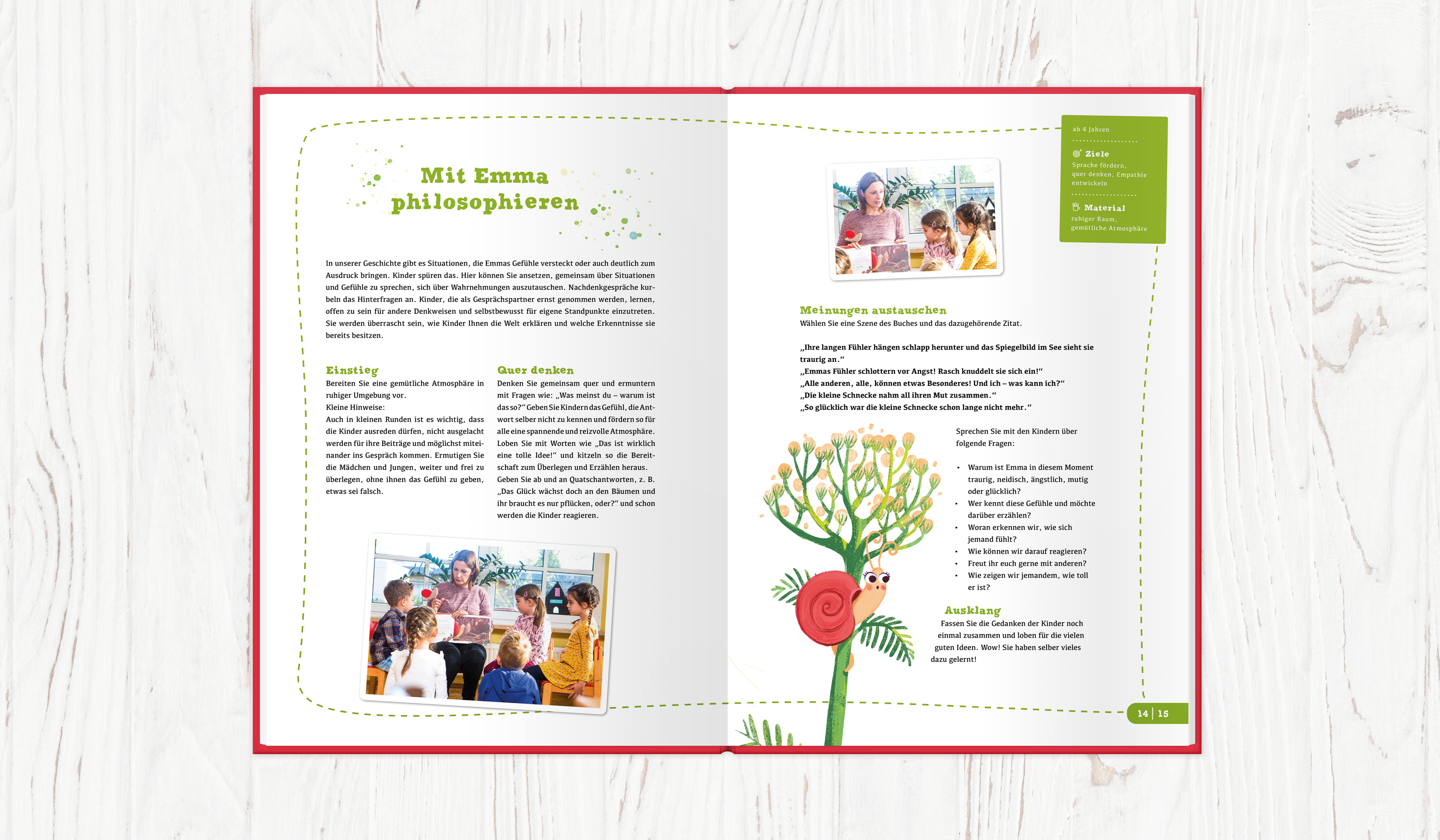 Das bunte Projektheft für Erzieher und Lehrer! Malen, Basteln, Entdecken, Staunen, Spielen, Tanzen, ins Gespräch kommen und musizieren zum Bilderbuch Emma Ohne dich wär` die Welt nur halb so schön! Wertvolle Anregungen aus den Bereichen Sprache fördern, Gefühl...