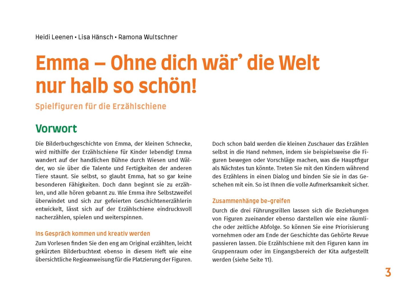Das Bilderbuch über Schnecke Emma für die Erzählschiene: Eigene Stärken erkennen, Mut haben und das Selbstvertrauen stärken mit einer Mitmachgeschichte. Eigene Stärken erkennen mit einer tierischen Freundschaftsgeschichte Die kleine Schnecke Emma erkundet den ...