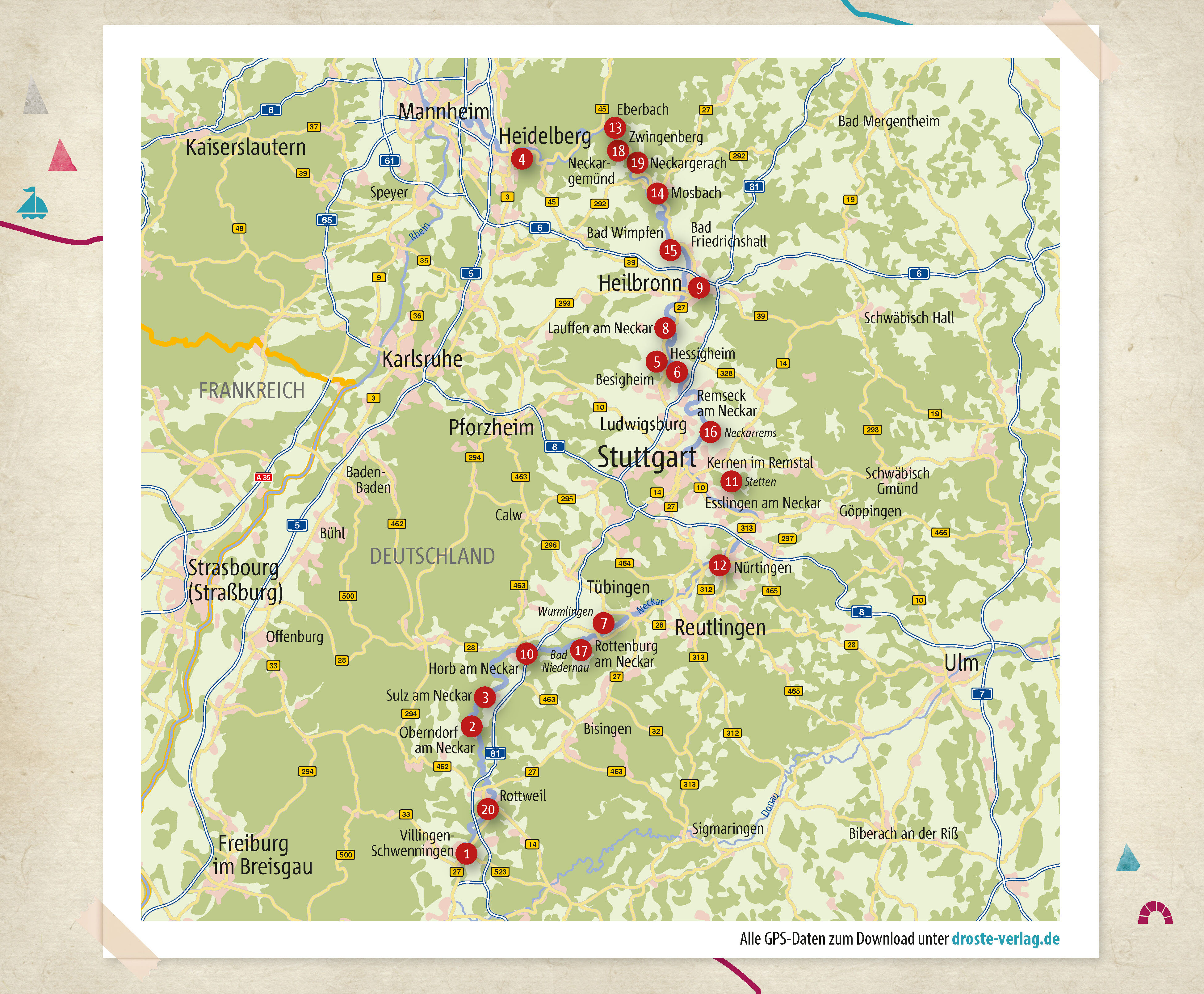 Von der Neckarquelle im Moor wandelt man auf weichen Mooswegen zu mittelalterlichen Städten bis in die Reben. Das Wasser rauscht im Tal, die Sonne blitzt durch das Blätterdach und ein Hase huscht über eine Wiese 20 Wohlfühlwege locken mitten hinein in diese Fl...