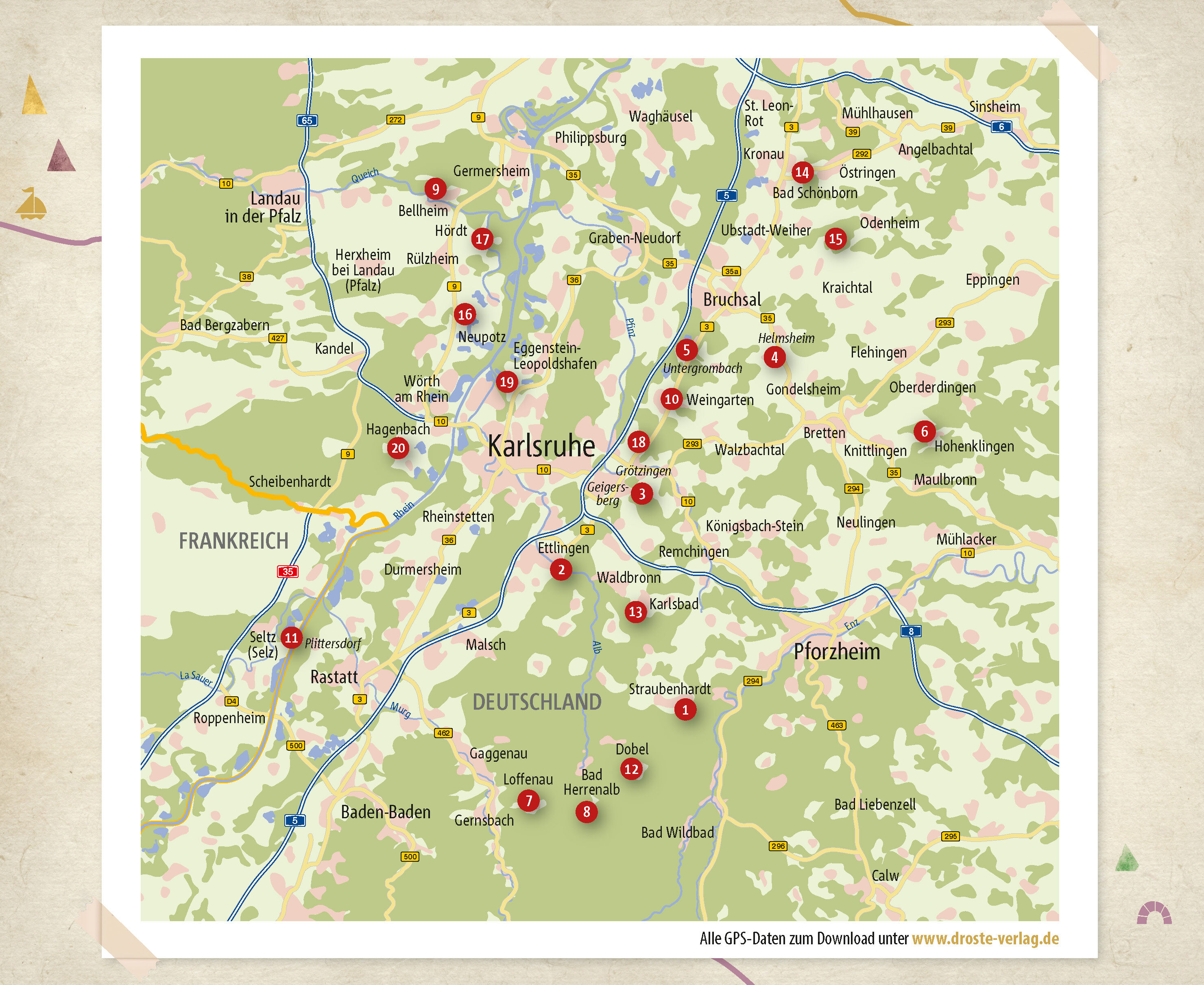 Ungeahnte Weitblicke, idyllische Täler, klare Bäche und ein Hochgenuss für den Gaumen vor den Toren der Fächerstadt Karlsruhe wandert man in einem grünen Paradies. 20 Wohlfühlwege führen zu den Rheinauen, durch das mystische Weingartener Moor bis in das Tal de...