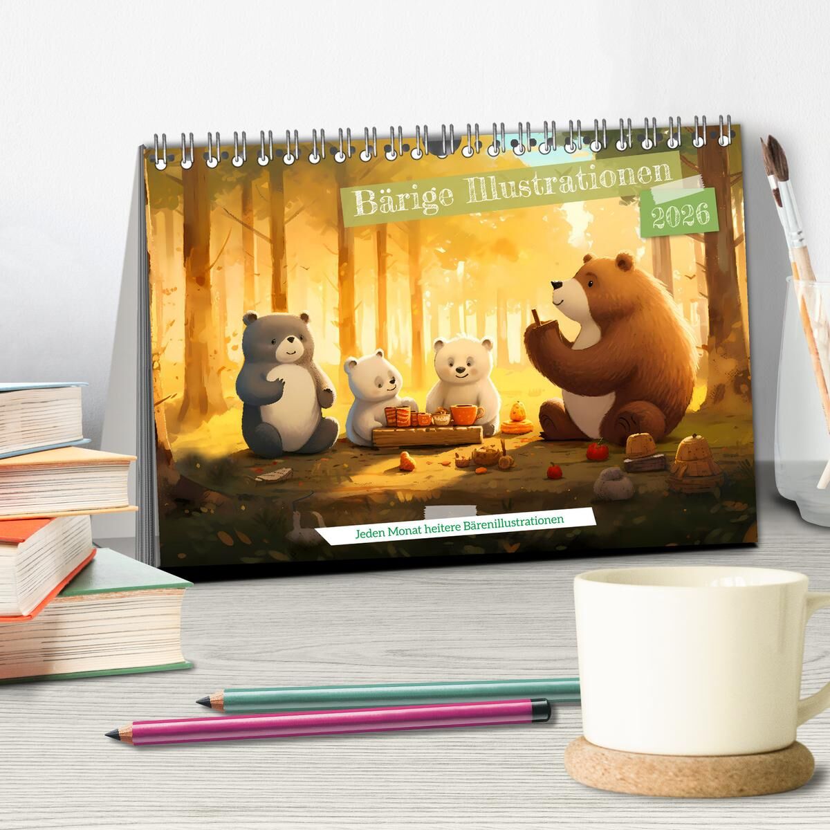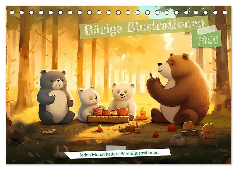 Bärige Illustrationen (Tischkalender 2026 DIN A5 quer), CALVENDO Monatskalender