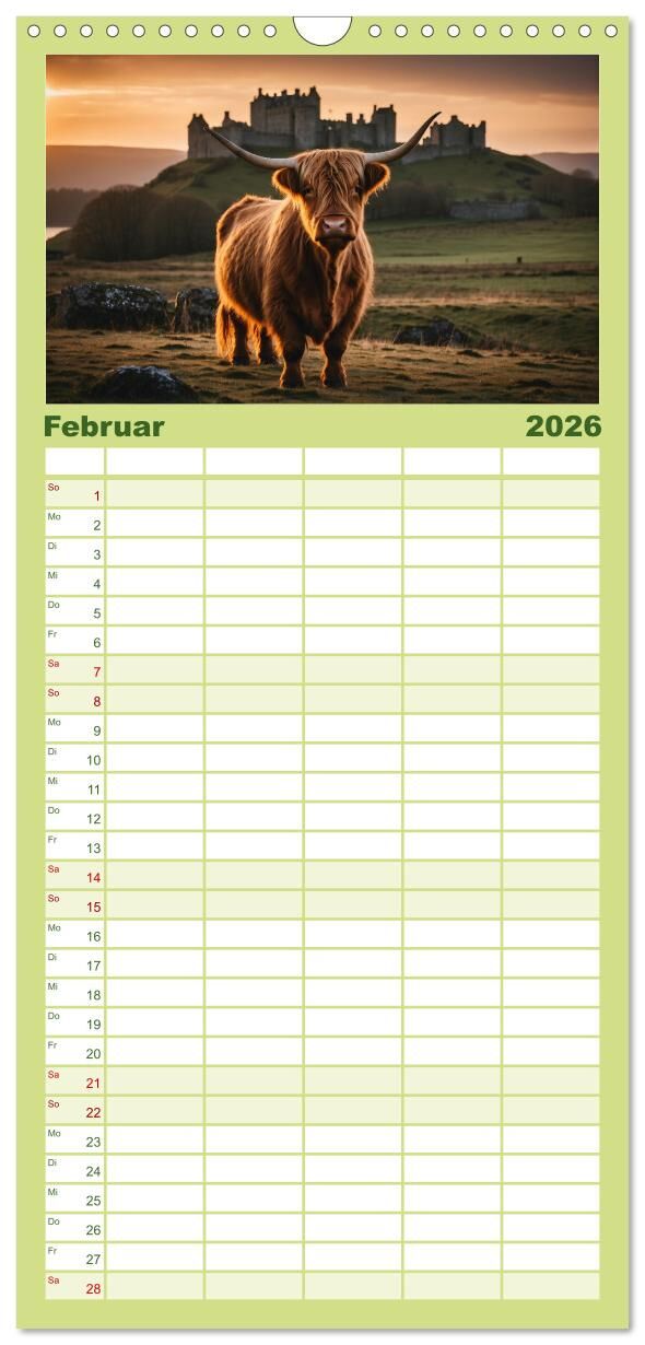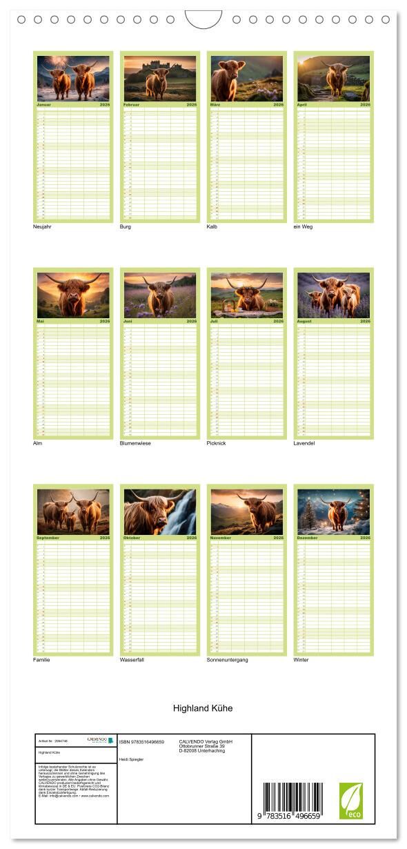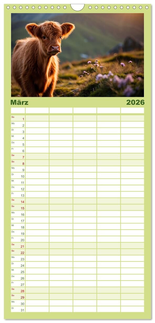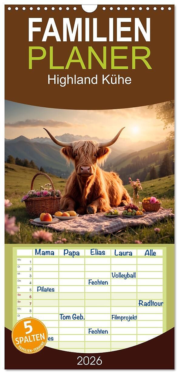 Familienplaner 2026 - Highland Kühe mit 5 Spalten (Wandkalender, 21 x 45 cm) CALVENDO