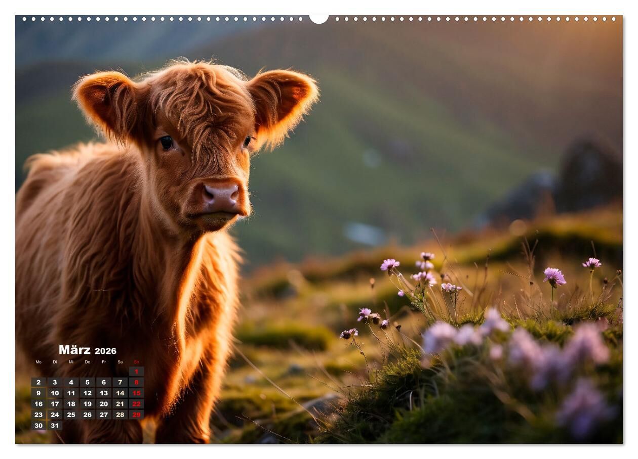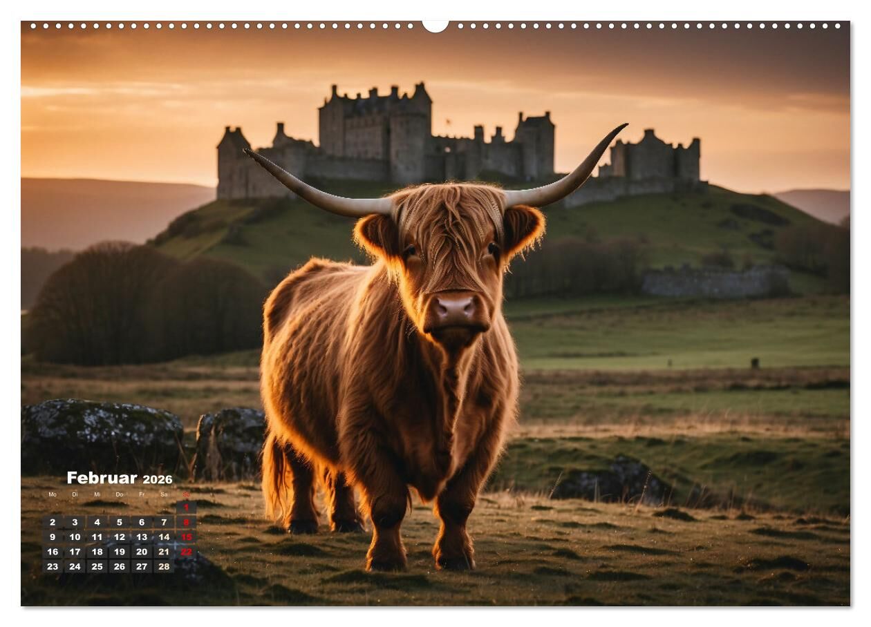 Erleben Sie das Jahr auf eine einzigartige und beeindruckende Weise mit unserem exklusiven Highland-Kuh-Kalender. Tauchen Sie ein in die majestätische Schönheit dieser imposanten Rinder, die in verschiedenen atemberaubenden Landschaften und vor anmutigen Sonne...