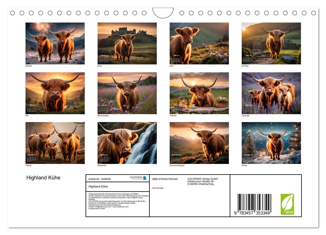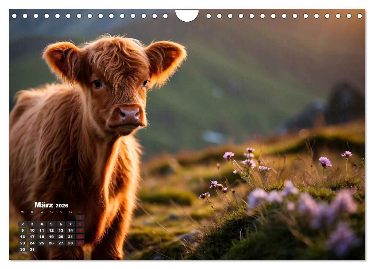 Erleben Sie das Jahr auf eine einzigartige und beeindruckende Weise mit unserem exklusiven Highland-Kuh-Kalender. Tauchen Sie ein in die majestätische Schönheit dieser imposanten Rinder, die in verschiedenen atemberaubenden Landschaften und vor anmutigen Sonne...