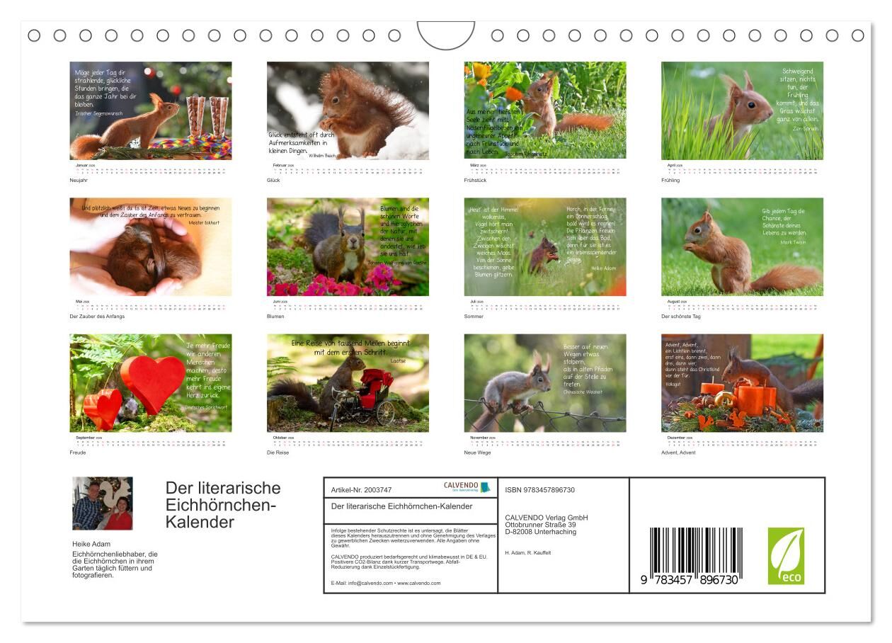 Der literarische Eichhörnchen-Kalender (Wandkalender 2026 DIN A4 quer), CALVENDO Monatskalender