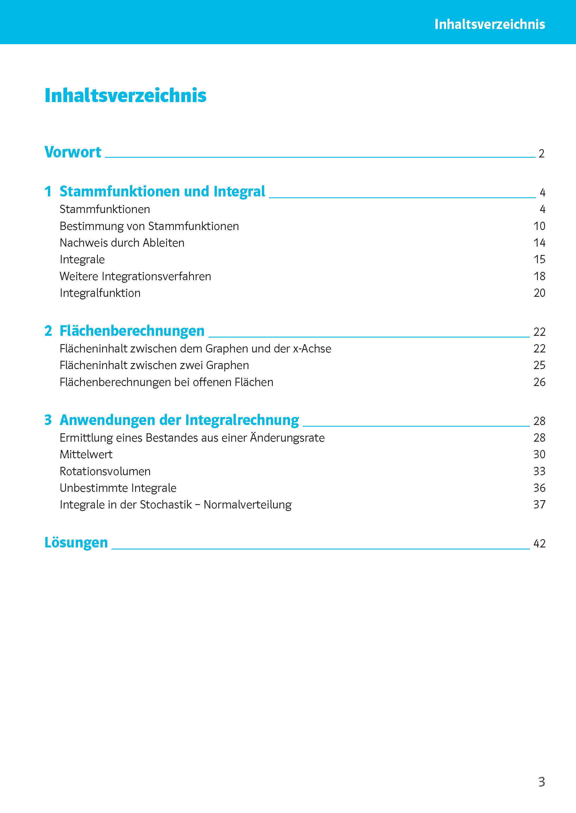 Integralrechnung sicher in Mathe Klausuren und im Mathe Abi beherrschen In kleinen Lernportionen das Wichtigste trainieren Viele Übungen zu Stammfunktionen und Integral, Flächenberechnungen, Anwendungen (Ermittlungen Bestand aus einer Änderungsrate, Rotations...