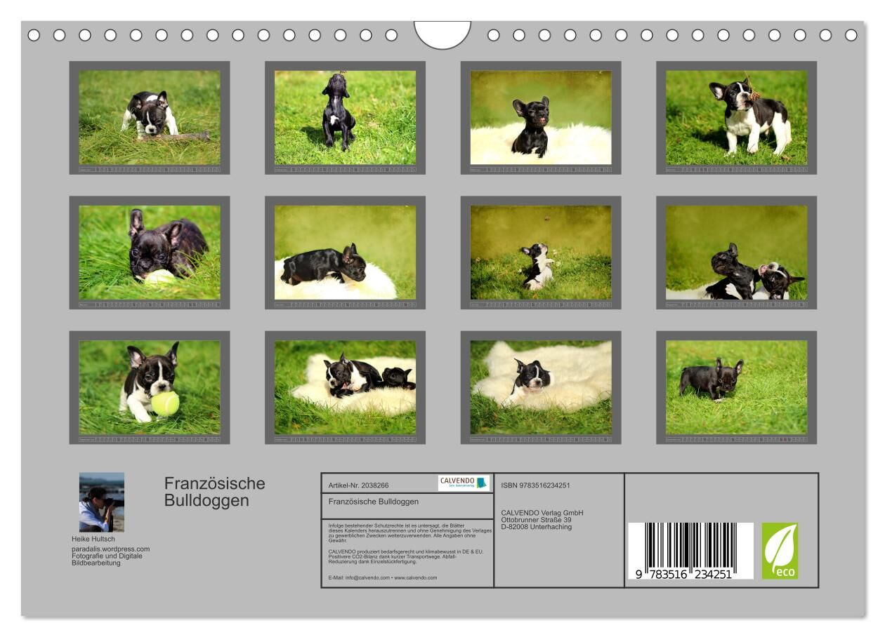 Diese wunderschönen Welpenaufnahmen begleiten und erfreuen Sie an jedem Tag im Jahr. Verspielt und humorvoll zeigt dieser Kalender zehn Wochen alte Französische Bulldoggenwelpen beim Spielen auf der Wiese.