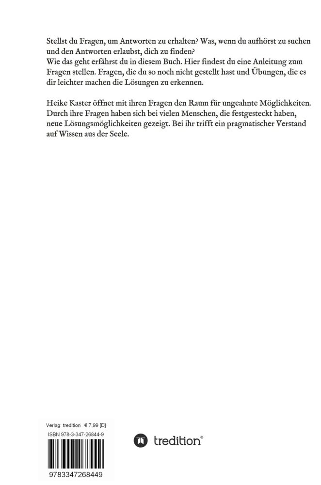 Stellst du Fragen, um Antworten zu erhalten? Was, wenn du aufhörst zu suchen und den Antworten erlaubst, dich zu finden? Wie das geht erfährst du in diesem Buch. Hier findest du eine Anleitung zum Fragen stellen. Fragen, die du so noch nicht gestellt hast und ...