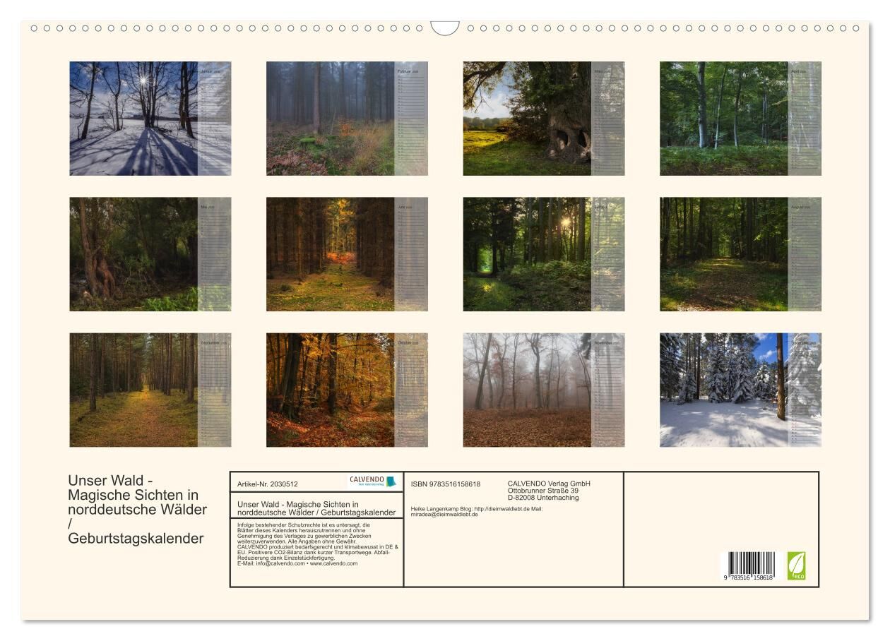 Unser Wald - Magische Sichten in norddeutsche Wälder / Geburtstagskalender (Wandkalender 2026 DIN A2 quer), CALVENDO Monatskalender