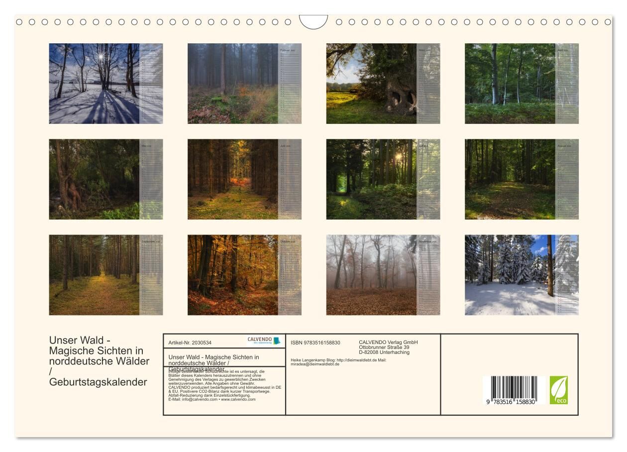 Unser Wald - Magische Sichten in norddeutsche Wälder / Geburtstagskalender (Wandkalender 2026 DIN A3 quer), CALVENDO Monatskalender