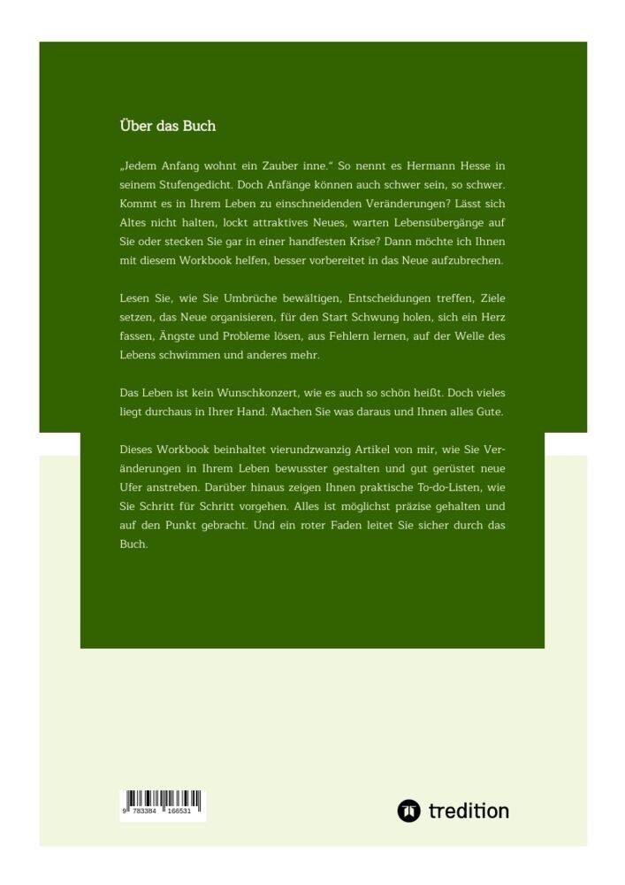 Jedem Anfang wohnt ein Zauber inne. So nennt es Hermann Hesse in seinem Stufengedicht. Doch Anfänge können auch schwer sein, so schwer. Kommt es in Ihrem Leben zu einschneidenden Veränderungen? Lässt sich Altes nicht halten, lockt attraktives Neues, warten Leb...