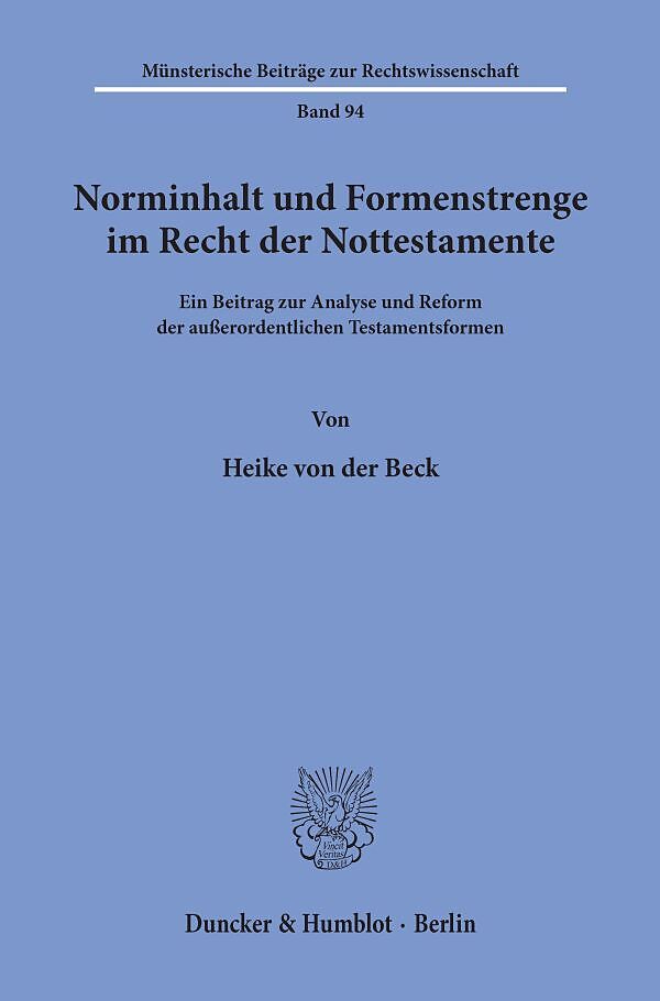 Norminhalt und Formenstrenge im Recht der Nottestamente.