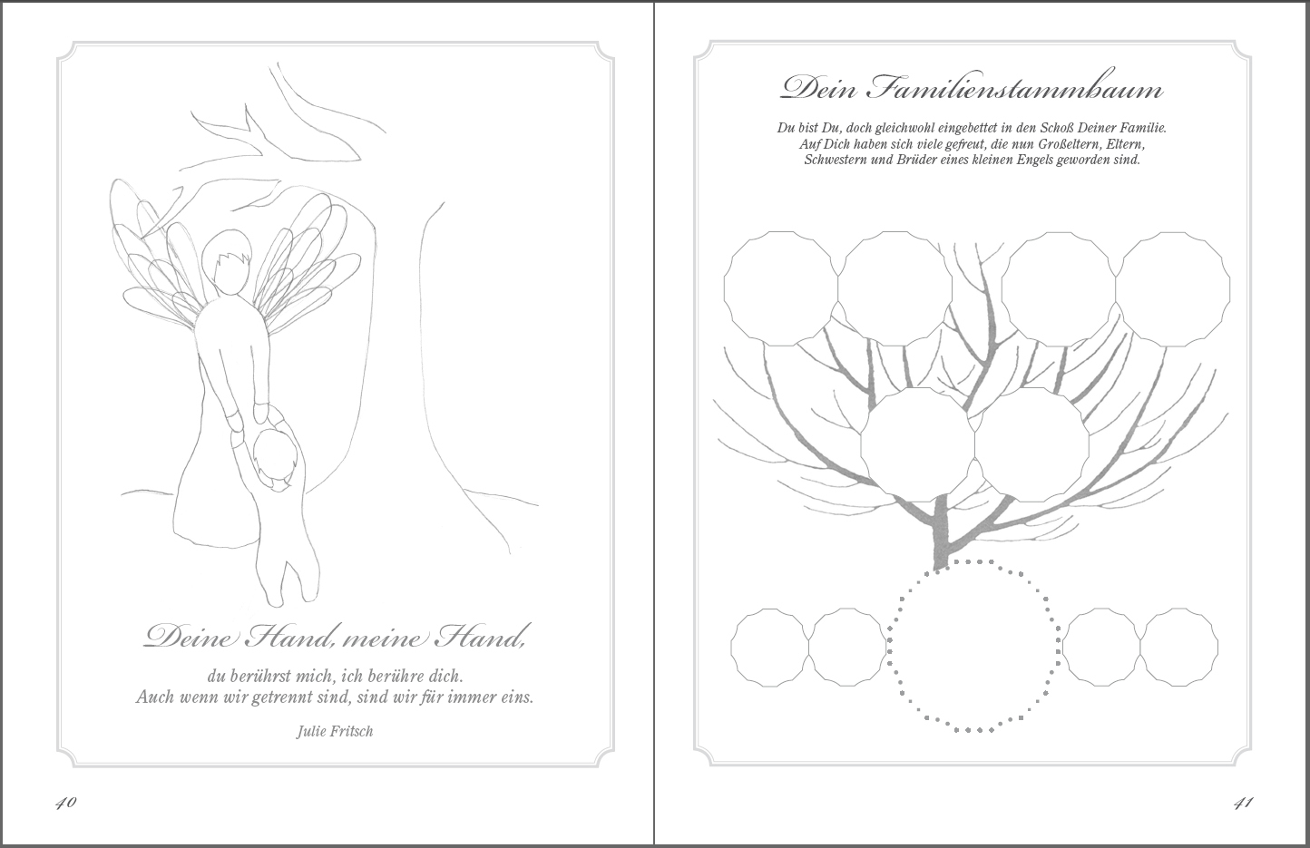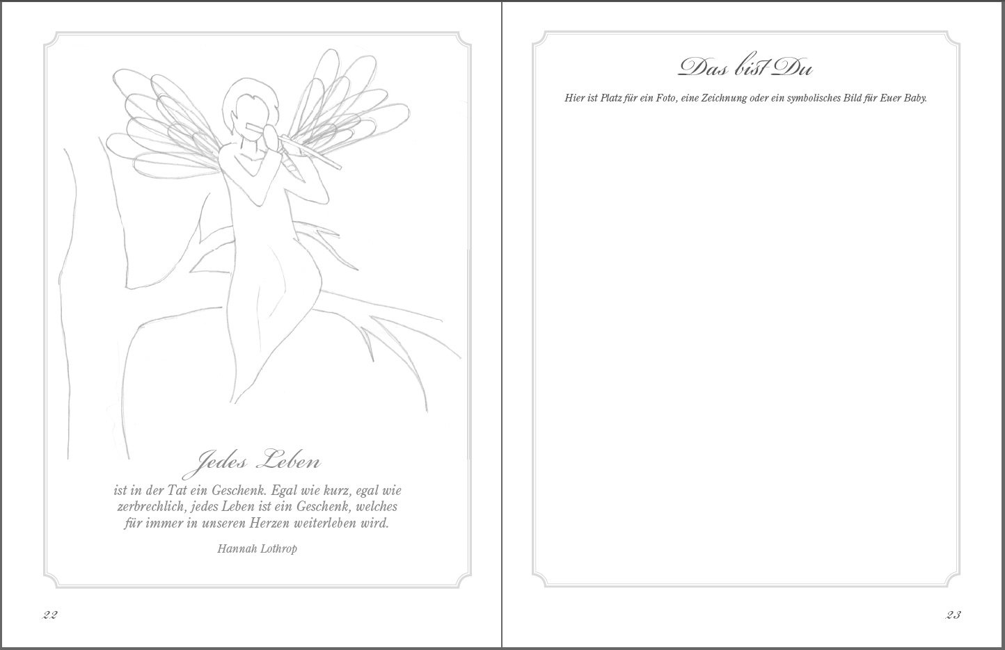 Dieses Erinnerungsalbum soll verwaiste Eltern fehlgeborener Kinder auf dem langen und oft schweren Weg der Trauer begleiten. Es soll helfen, ein ganz und gar unfassbares Schicksal anzunehmen. Und es soll diese Erfahrung für immer in einem stilvollen Rahmen auf...