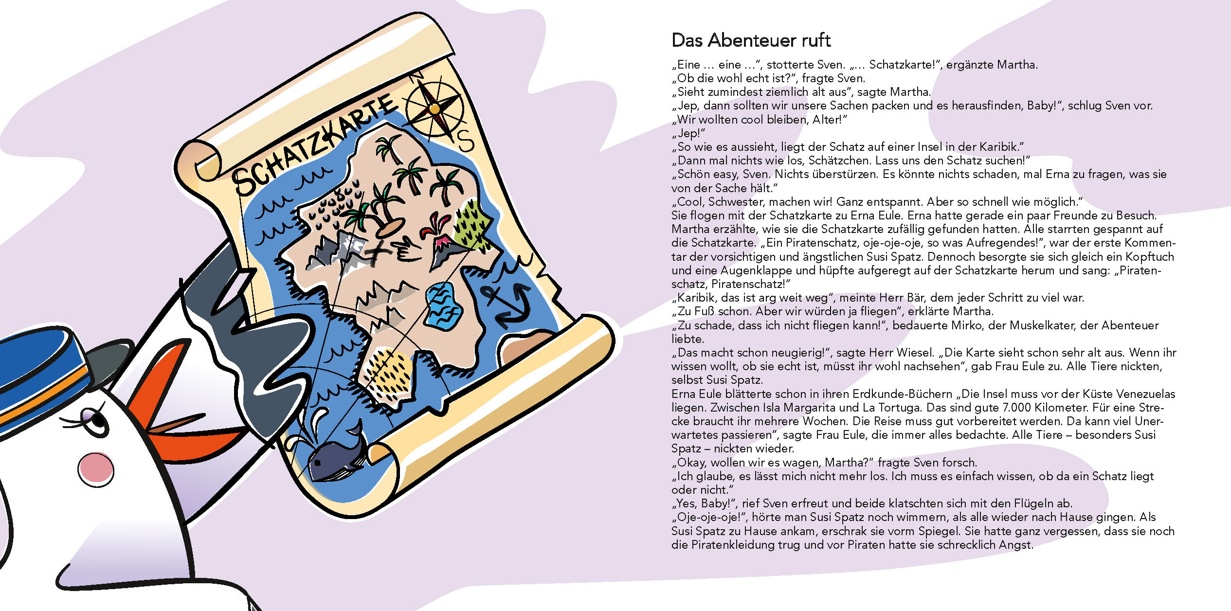 Ein ungleiches Team sind die beiden ja schon. Martha Möwe und Sven Storch. Als sie eine Schatzkarte von Captain Schmuddelbart finden, machen sie sich gemeinsam auf eine Schatzsuche in die Karibik. Werden sie den Schatz finden oder war am Ende der Pirat Flitzek...