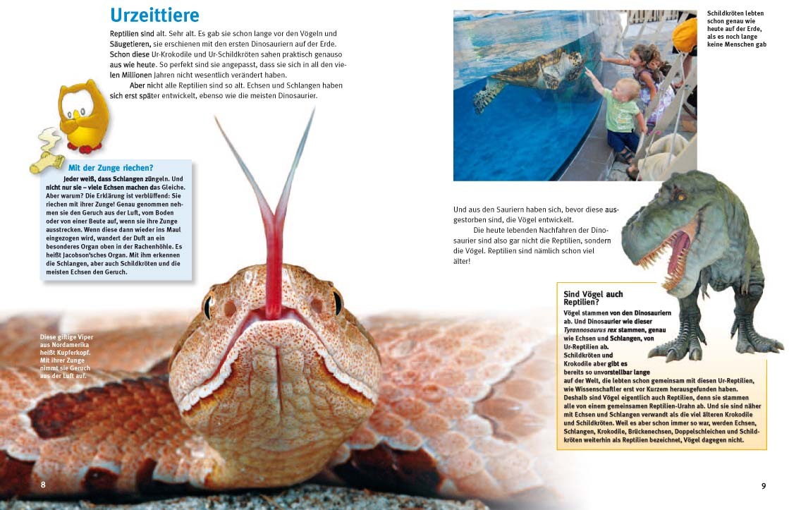 Reptilien sind die Drachen unserer Zeit! Einige von ihnen sind wirklich riesig. Manche haben große, scharfe Zähne und sind gefährlich. Andere spucken Gift, gleiten durch die Lüfte, wechseln blitzschnell ihre Farbe, schießen mit ihrer superlangen Zunge oder spr...