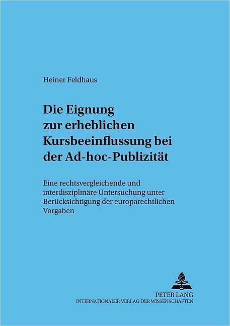 Eines der wesentlichen Ziele der EG-Kommission bei der Integration der europäischen Kapitalmärkte ist die Steigerung von Transparenz. Dabei ist die Ad-hoc-Publizität eines der wichtigsten Instrumente. Gleichwohl bestehen bei ihrer praktischen Handhabung nicht ...