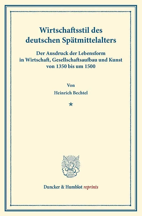 Heinrich Bechtel beschäftigt sich in seiner umfangreichen Studie mit dem Titel »Wirtschaftsstil des deutschen Spätmittelalters. Der Ausdruck der Lebensform in Wirtschaft, Gesellschaftsaufbau und Kunst von 1350 bis um 1500« aus dem Jahr 1930 mit der Wirtschafts...