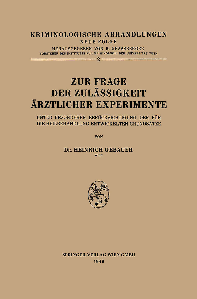 Zur Frage der Zulässigkeit Ärztlicher Experimente
