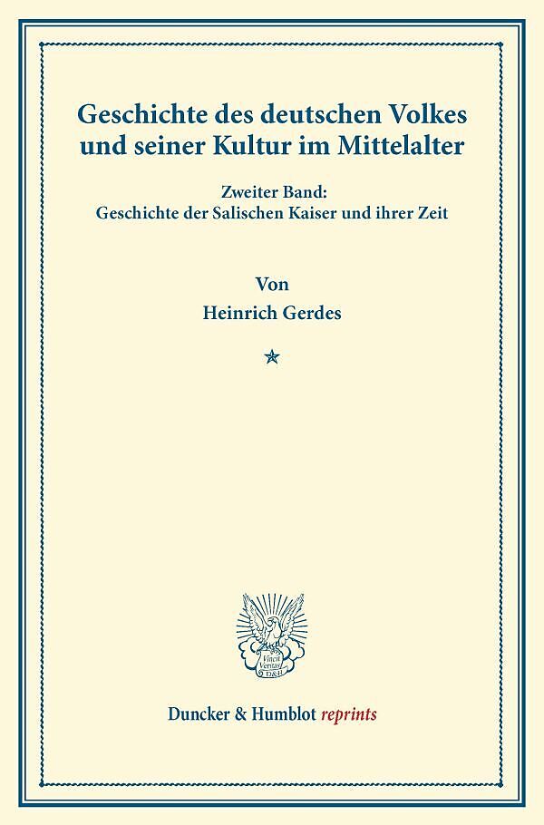 Unter dem Titel »Geschichte des deutschen Volkes und seiner Kultur im Mittelalter« erschien Heinrich Gerdes zweibändige Schrift, in der er anstrebt, die äußere Geschichte des deutschen Volkes im Mittelalter durch die Darstellungen der inneren Verhältnisse zu e...