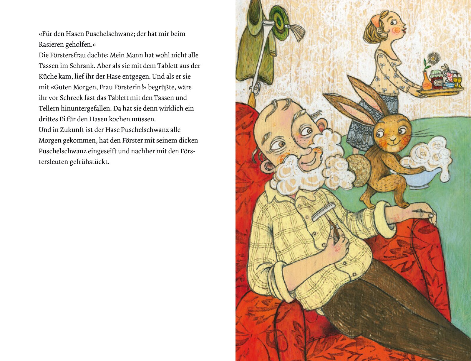 In dieser Sammlung lustiger Geschichten zum Vorlesen und Weiterphantasieren ist nichts unmöglich da verjagt die nigelnagelneue Schere einen Dieb, der kleine Hase Puschelschwanz seift dem Förster mit seinem Schwanz das Gesicht ein, das übermütige Pferd Huppdiw...