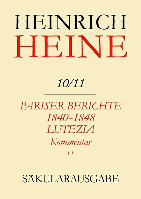 Mit diesem Band erscheint ein weiterer umfangreicher Kommentar zur deutschen Abteilung der Heine-Säkularausgabe, deren Textbände seit längerem vollständig vorliegen. Band 10/11K I vervollständigt den "Lutezia"-Komplex (zwei Text- und zwei Kommentarbände). Ban...