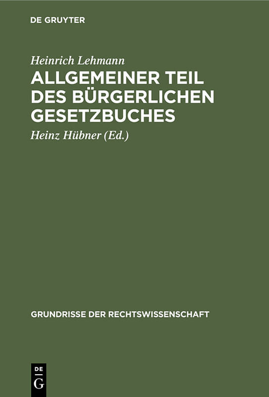 Frontmatter -- Vorwort zur ersten Auflage -- Aus dem Vorwort zur fünften Auflage -- Vorwort zur fünfzehnten Auflage -- Vorwort zur sechzehnten Auflage -- Inhaltsverzeichnis -- Verzeichnis der Abkürzungen -- Einleitung Das deutsche bürgerliche Recht Die Lehre v...
