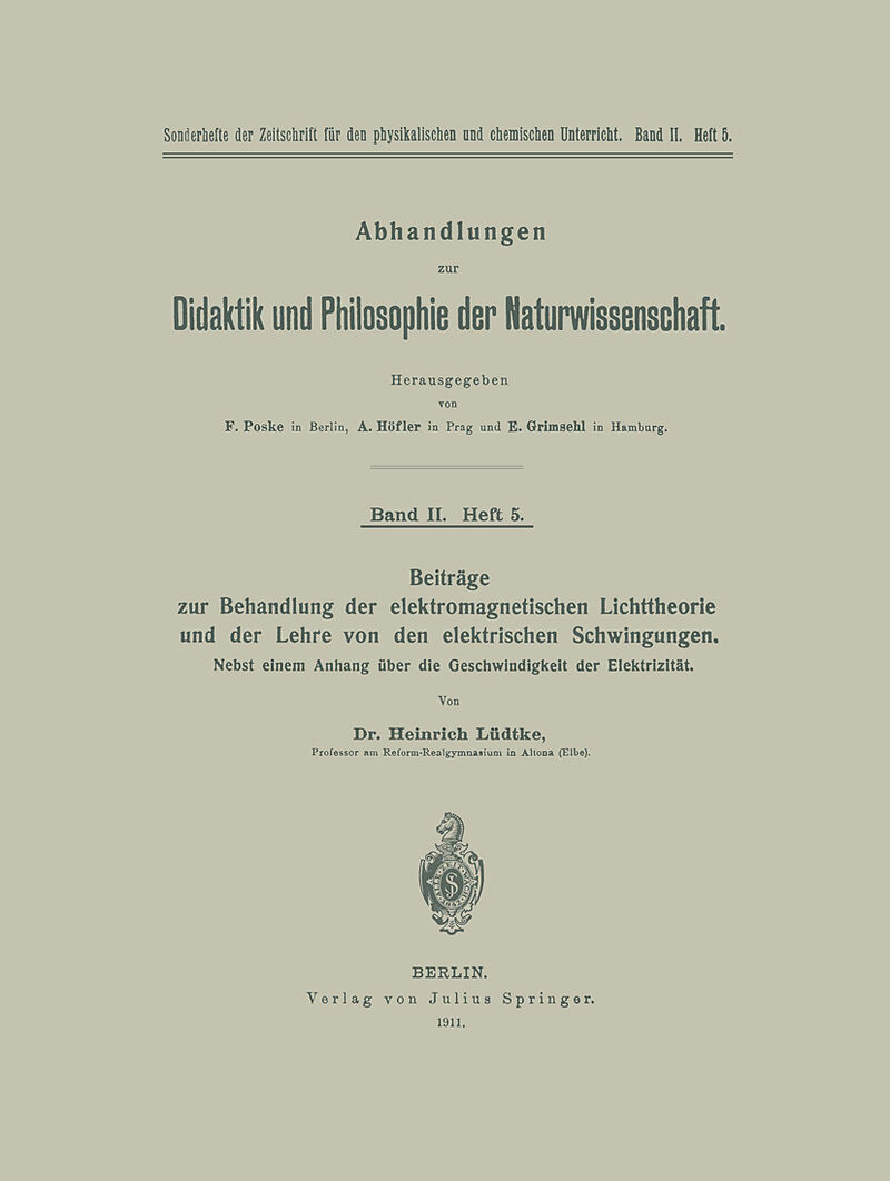 Inhalt Inhalts-Ubersicht.- I. Versuehe mit Teslaströmen.- A. Mechanische Wirkungen..- B. Versuche mit Loosers Thermoskop..- C. Anfertigung des Transformators; Abstimmung und andere Versuche..- D. Lichtwirkungen..- E. Chemische Wirkungen. Ozonisatorversuche. Fu...