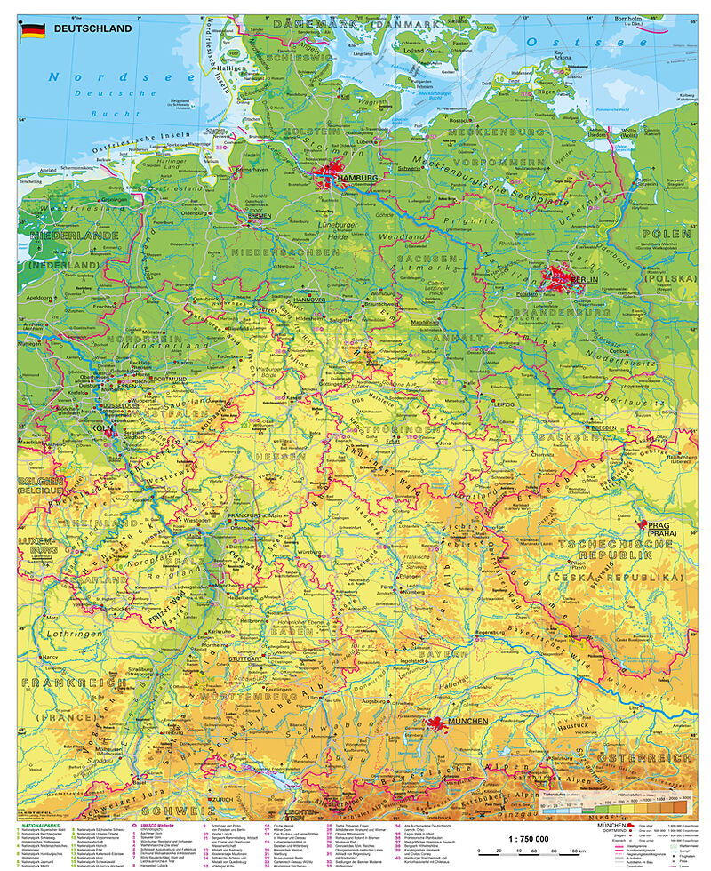 Deutschland physisch Wandkarte / Poster