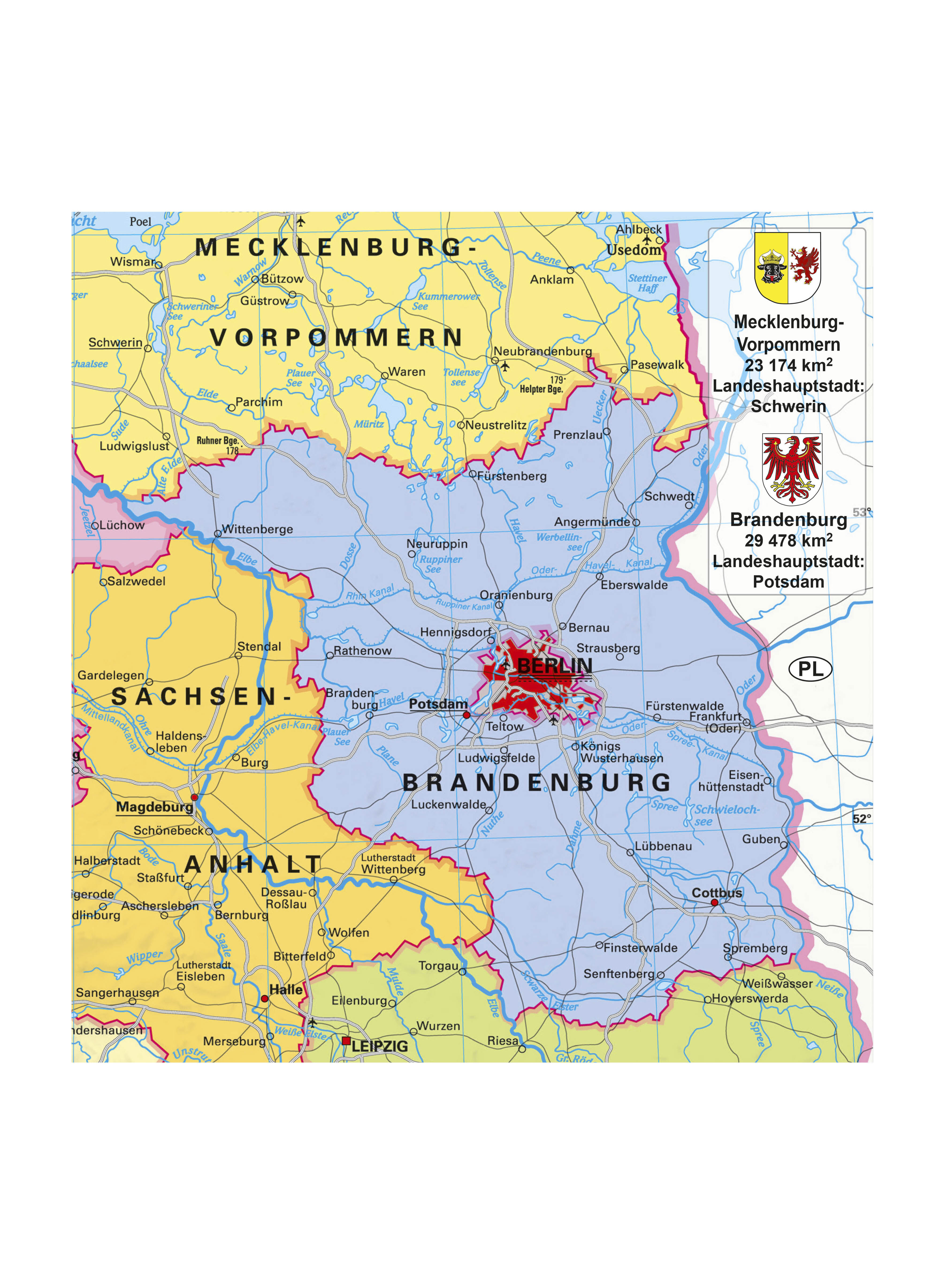 Umweltfreundliches Lernposter in DIN A1 für das Kinderzimmer gedruckt auf hochwertigem Papier aus nachhaltiger Forstwirtschaft Druckfarben und Schutzlack erfüllen die Norm für Kinderspielzeug EN71/3 - politische Darstellung Deutschlands - Bundesländer mit Regi...