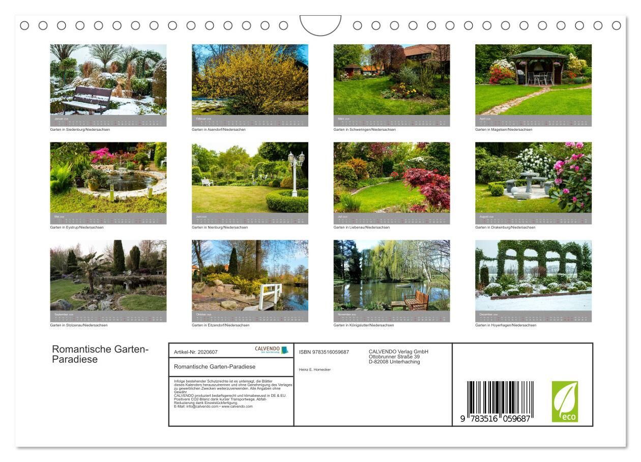 Romantische Garten-Paradiese (Wandkalender 2026 DIN A4 quer), CALVENDO Monatskalender