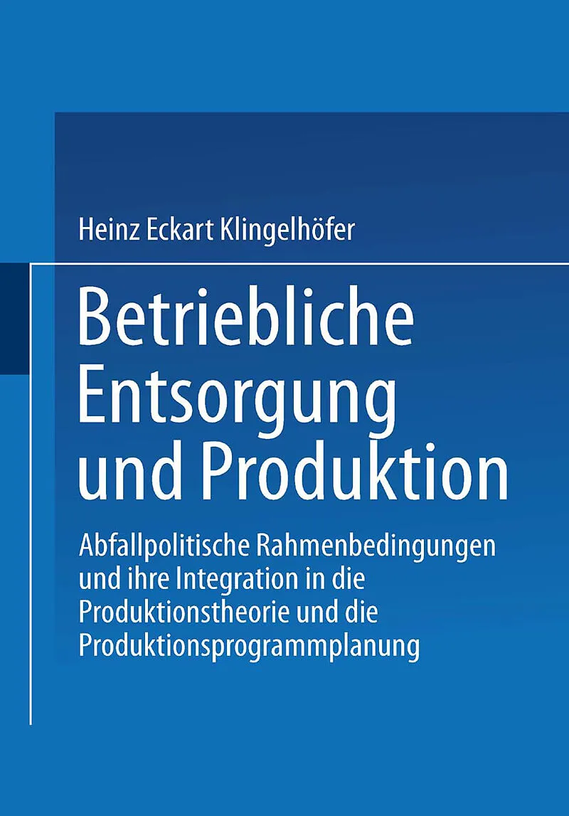 Durch den Wandel des gesellschaftlichen Umfelds und den wachsenden Stellenwert der Umweltpolitik gewinnt die Entsorgung immer größere Bedeutung im betrieblichen Handeln. Heinz Eckart Klingelhöfer analysiert zunächst die volkswirtschaftlichen und juristischen V...