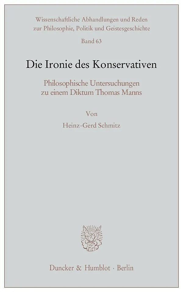 Thomas Mann nennt den Konservativen einen Ironiker; Richard Rorty die Ironikerin eine Liberale. Schmitz' Buch liefert zur Entscheidung der Frage, welche Auffassung sich eher vertreten läßt, einerseits ein neues Kriterium zur Identifikation einer konservativen ...