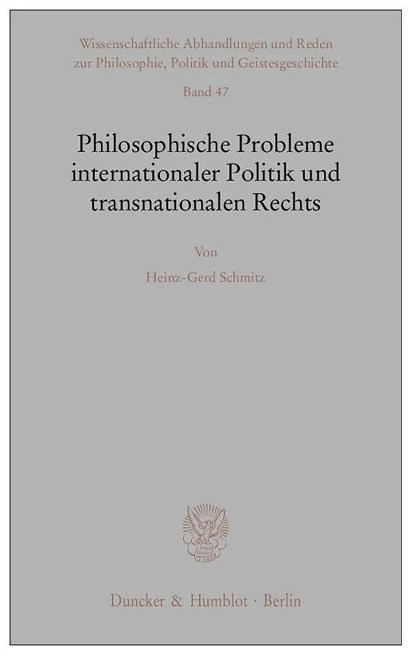 Die politische Philosophie hat sich mit Fragen der internationalen Beziehungen bisher nur recht sporadisch befaßt. Intensiver erörtert worden ist der Begriff der Souveränität, das bellum iustum-Theorem hat eine nicht unbedeutende Rolle gespielt, auch der Begri...